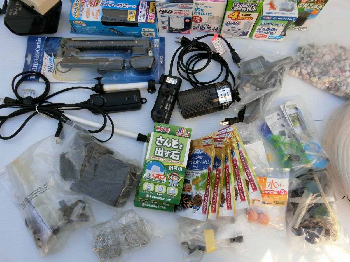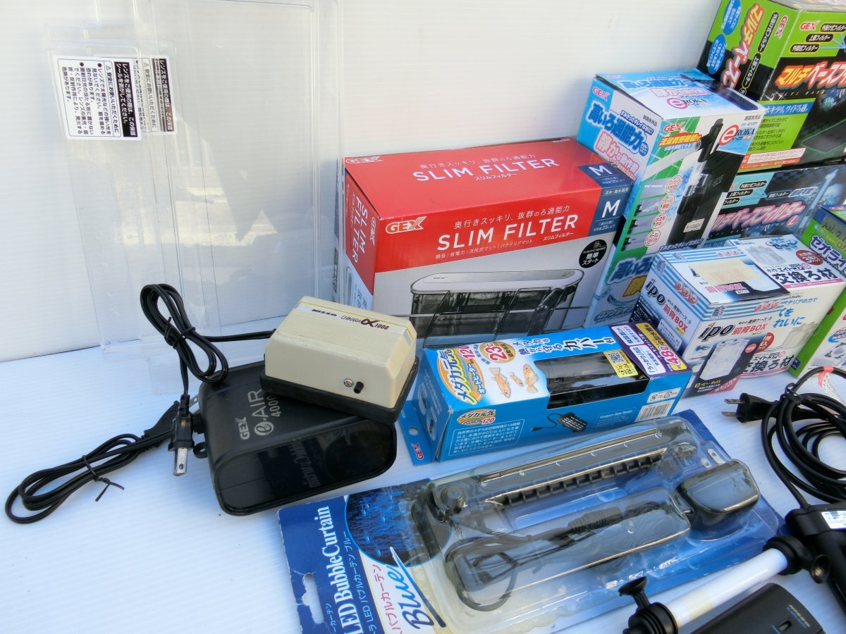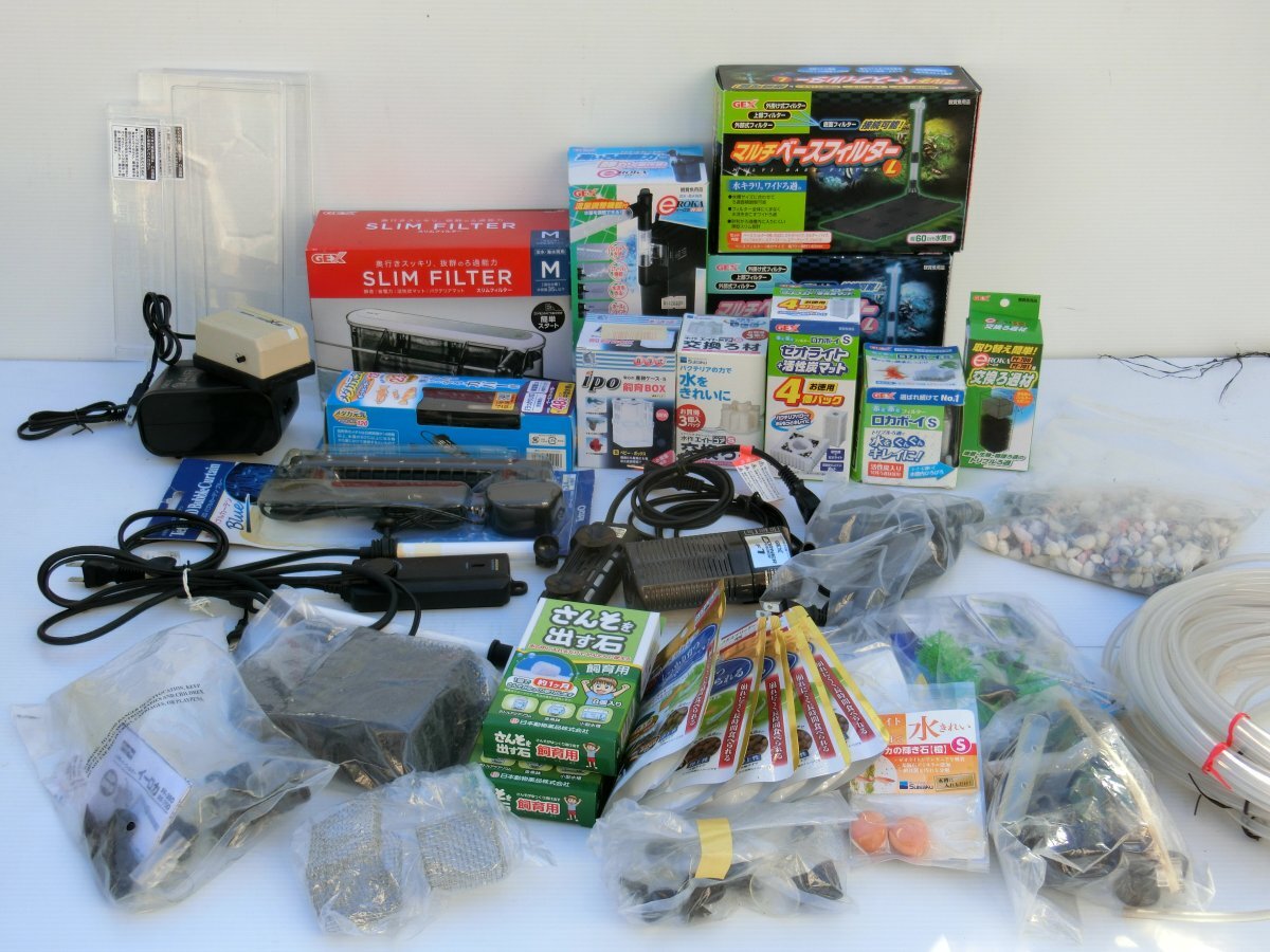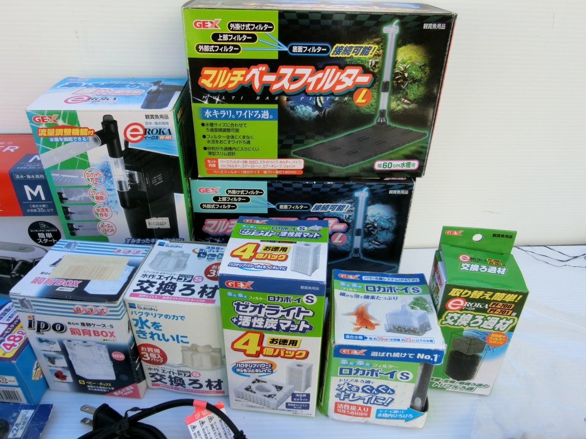★沖縄県の方→発送不可です、ごめんなさい。(入札はご遠慮ください) 「中古品」です 一部未使用品もあります フィルタ3台は動作確認しました エアーポンプ2台は、通電の確認だけしました ヒーター4台は、未確認です ベースフィルター、2枚に割れがあります きず・よごれ、あります 下記リストに間違いがあるかもしれませんので お写真でご確認おねがいします 使用方法等のサポートはできません テトラ LED バブルカーテン ブルー 未開封 水槽ふた 30Cm 2枚(プラスチック) 中古 ヒーター オートヒーター50ミニミニ 26℃ ジェックス 中古 ヒーター メダカ元気120 SH120 ジェックス 化粧箱 中古 ヒーター メダカ元気120 SH120 ジェックス 中古 ヒーター 型番不明 150W ニッソー 中古 フィルター スリムフィルターS ジェックス 中古 フィルター eROKA PF-701 ジェックス 化粧箱 中古 フィルター CORNER POWER F1 ジェックス 中古 フィルター SLIM FILTER M ジェックス 未開封 エアーポンプ eーAIR 4000WB ジェックス 中古 エアーポンプ CHIKARAα1000 ニッソー 中古 ロカボーイS ゼオライト+活性炭マット 未使用2個 ロカボーイS パワーろ過システム 中古 水作エイトコアS 交換ろ材 3個入りパック 未使用 eROKA PF-700・PF-701 交換ろ過材 未使用 ろ過材 数点 中古 ベースフィルターL(底面式) 2箱 ジェックス 中古 ipo飼育BOX 産卵ケース 中古 さんそを出す石 2箱 未開封 メダカ元気 フード 期限切れ 5袋 未開封 メダカの輝き石 1袋 未開封 じゃり他 中古 リシアネット 4個 中古 水温計 5本 中古 二又分岐 未開封 パーツ類ごちゃっと 中古 エアーホース 中古 ★出品時の動作状態が落札者様のところで必ず再現されるお約束はできません -------------------------------------------------------- ●上記「お約束」に同意の上、ご入札お願いいたします | ||