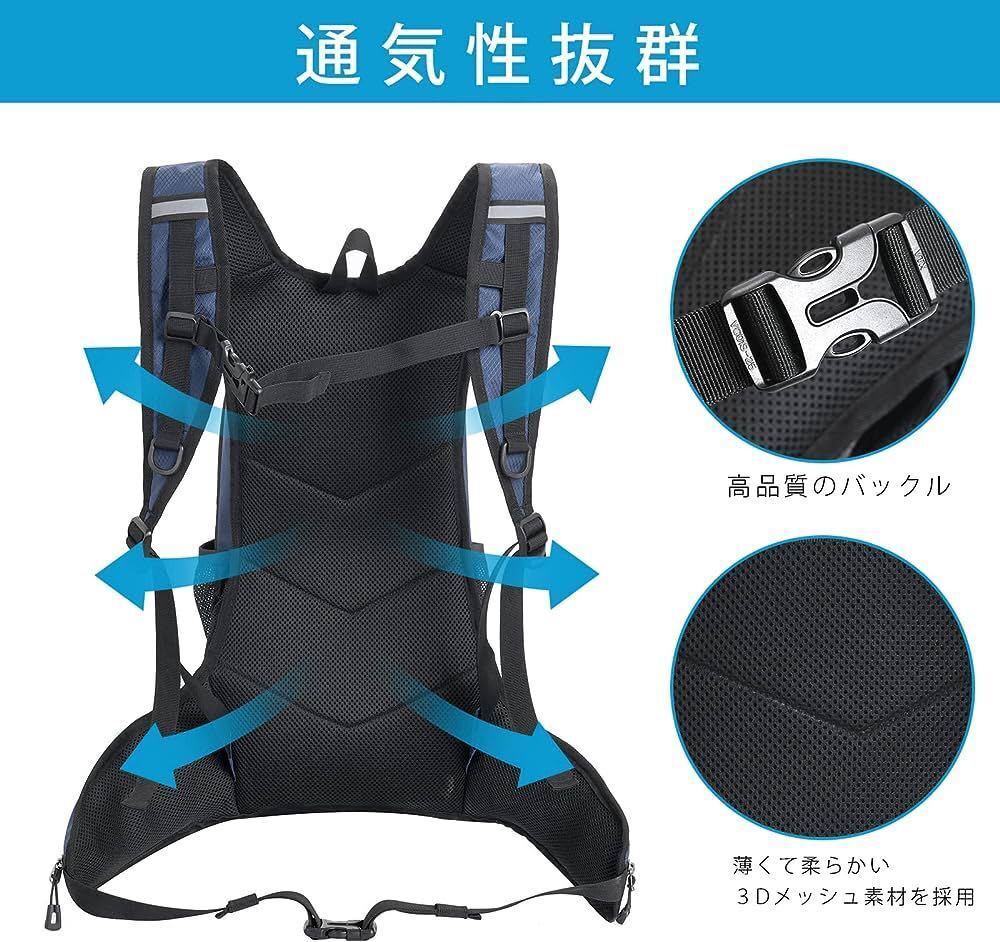 【軽量、大収納容量】:僅か430gで柔らかくて快適な自転車バッグパック。メインポケットは8Lハイドレーションが収納可。それ以外、左右のストラップに500mlペットボトルを収納できるポケットも付けています。
