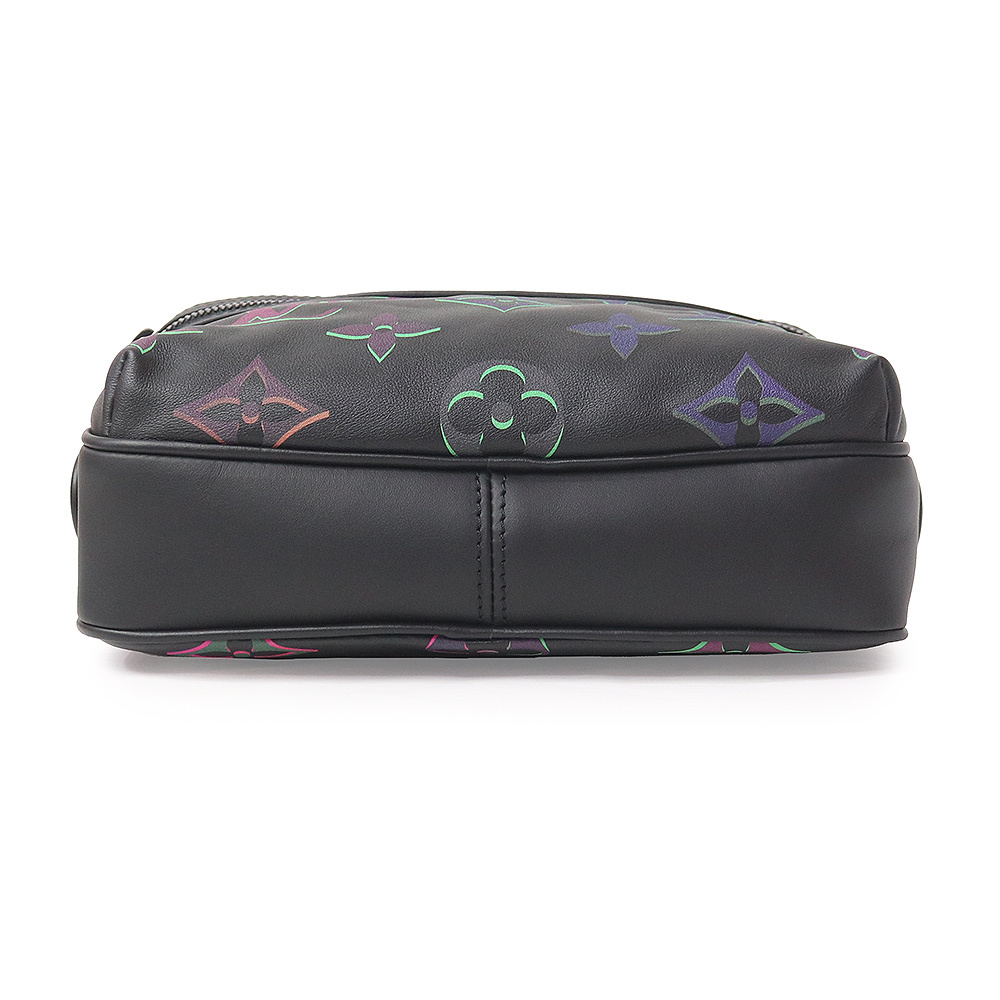 鮮やかなパープル&ネオングリーンのモノグラム・パターンのプリントを多重露光のような風合いであしらったカーフレザーで、コンパクトに仕上げた「コメット・メッセンジャー」。まるでスポットライトに照らされたような色合いのグラデーションが特徴です。ダブルファスナー開閉式の開口部が中身をしっかりと守り、必需品をすぐに取出せるのも魅力。