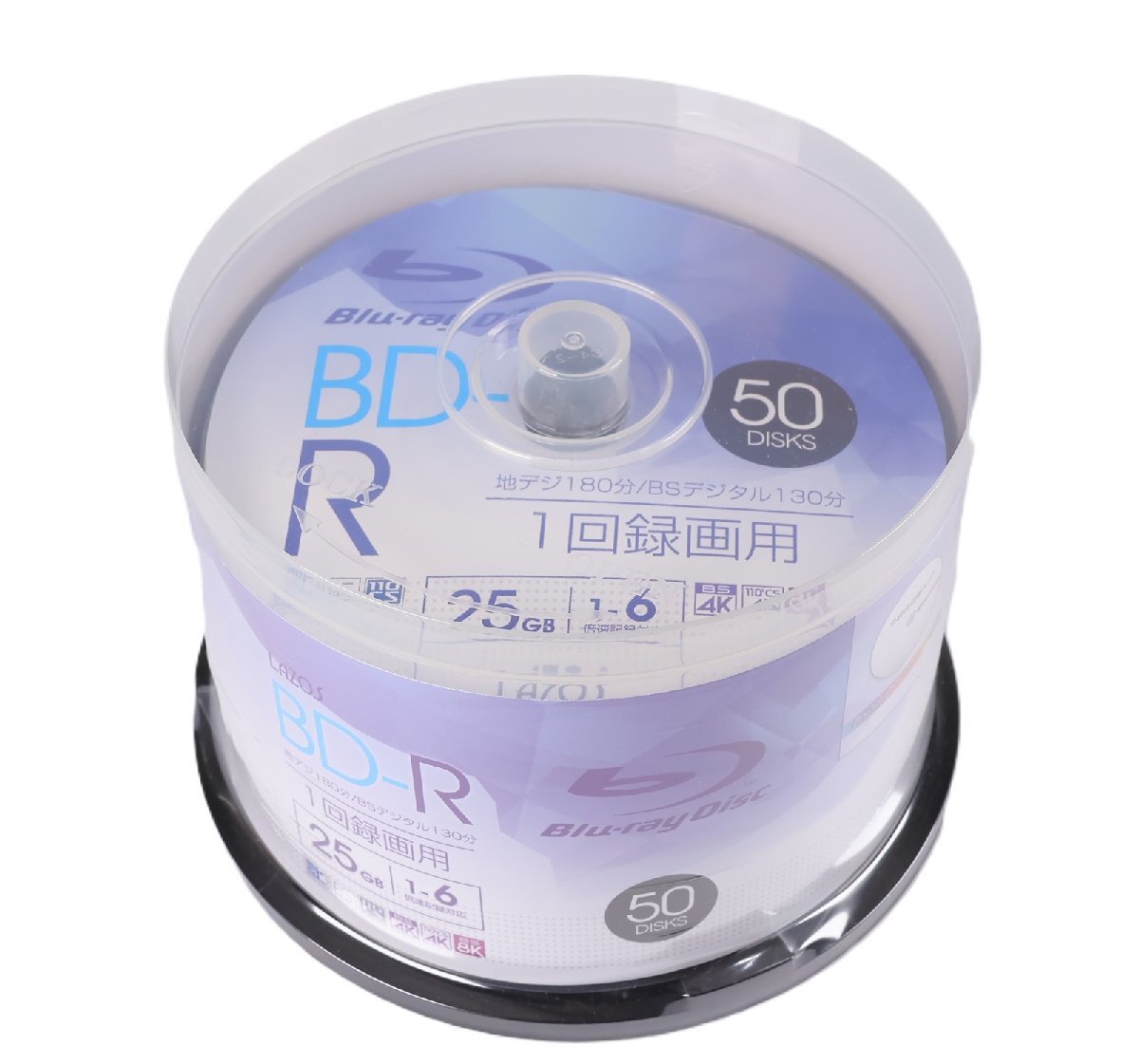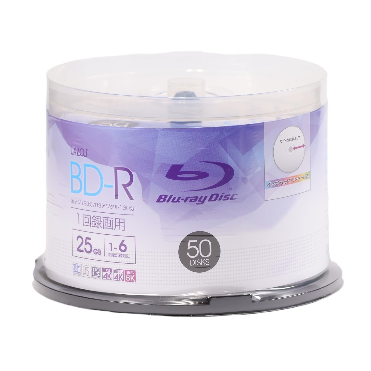 ビデオ用BD-R 25GB 50枚スピンドル Lazos L-B50P 6倍速