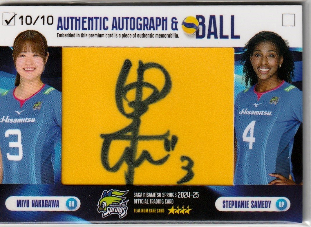 10枚限定【中川美柚】10/10 直筆サイン入りボールカード SAGA久光スプリングス~2024-25~