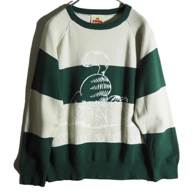 P5091f25 ■WIND AND SEA ウィンダンシー × GARFIELD ガーフィールド■ BORDER CREW KNIT コットン ボーダーニット アイボリー M 秋~春