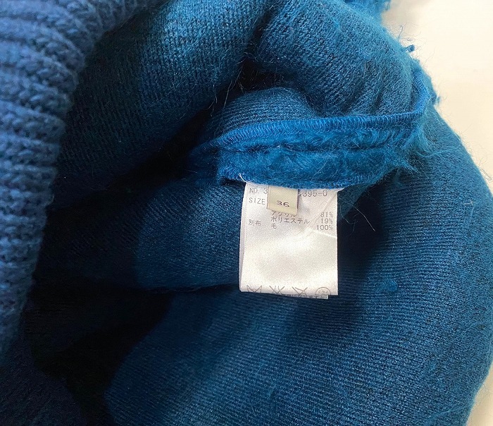・素材: アクリル81%ポリエステル19% / 別布 ウール100% ・カラー: ブルー ・サイズ: 36 実寸(平置きにして)肩幅 約54cm・身幅 約59cm・着丈 約60.5cm・袖丈 約53cm(多少の誤差はお許しください) 肌触りがよく着心地が良いです。 クロアチア製 ネックタグにうす汚れがありますが、 目立つ大きな傷み汚れなし。 かなりお値打ちだと思います。この機会にぜひ! 他にもいろいろ出品しています。 管理番号: 052412 ACO |