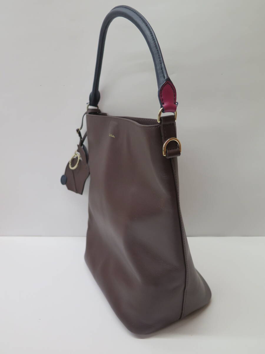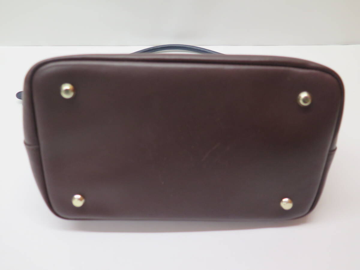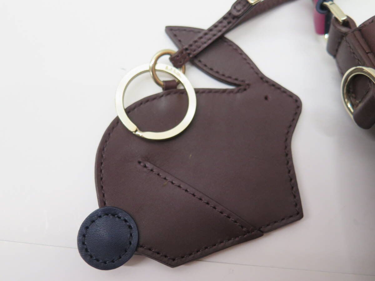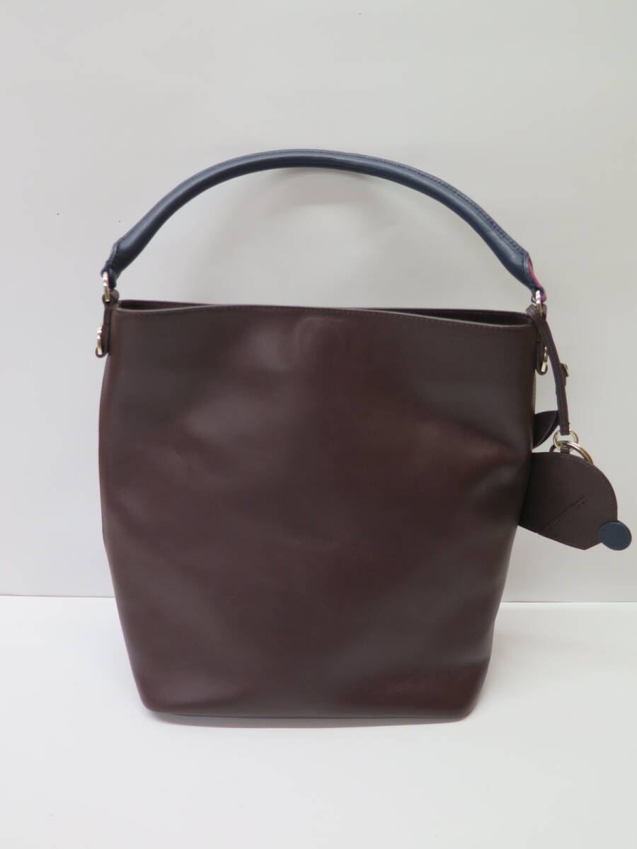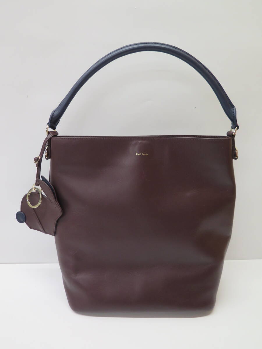 美品 Paul Smith ポールスミス レザーバッグ ウサギのキーチャーム付き 茶 ブラウン ハンドル:ネイビー ゴールド金具
