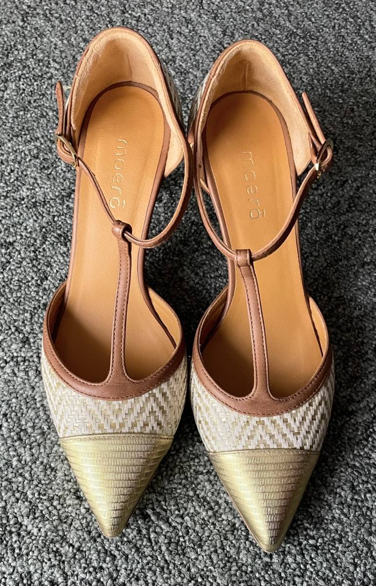 新品★イタリア製★moero★ゴールド本革Xゴールド糸オールシーズンツイード★履きやすい上品パンプス