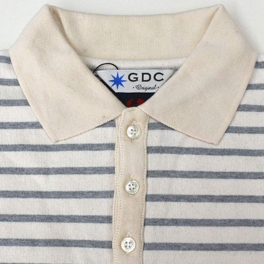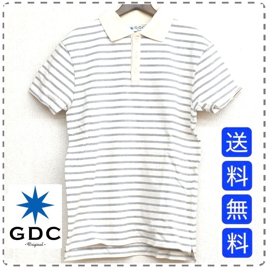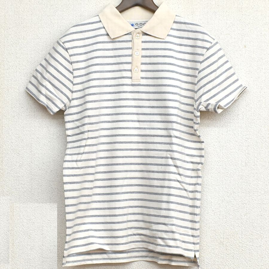 メンズSサイズ グレー 半袖ボーダーポロシャツ GDC ジーディーシー アメカジ 綿100% コットン 全国送料無料 A744