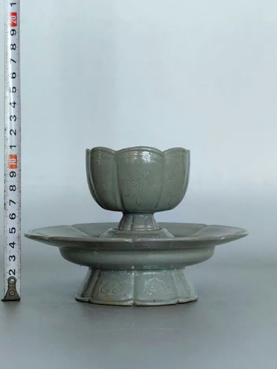 ▼渡鶴羽▼P972朝鮮古美術 朝鮮古陶磁 高麗 李朝 高麗磁 古高麗 李朝 高麗青磁陽刻盞