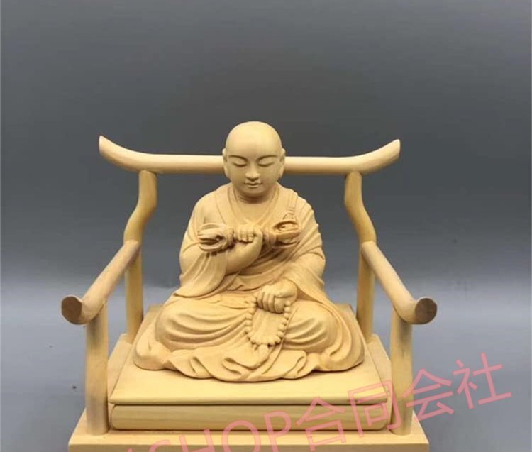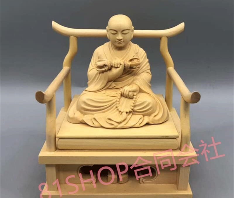 「81SHOP」木彫り仏像【弘法大師座像】四角台 高級天然ツゲ木彫り 総高12cm 真言宗の開祖・空海 木彫り ぶつぞう 仏像フィギュア (こうぼ
