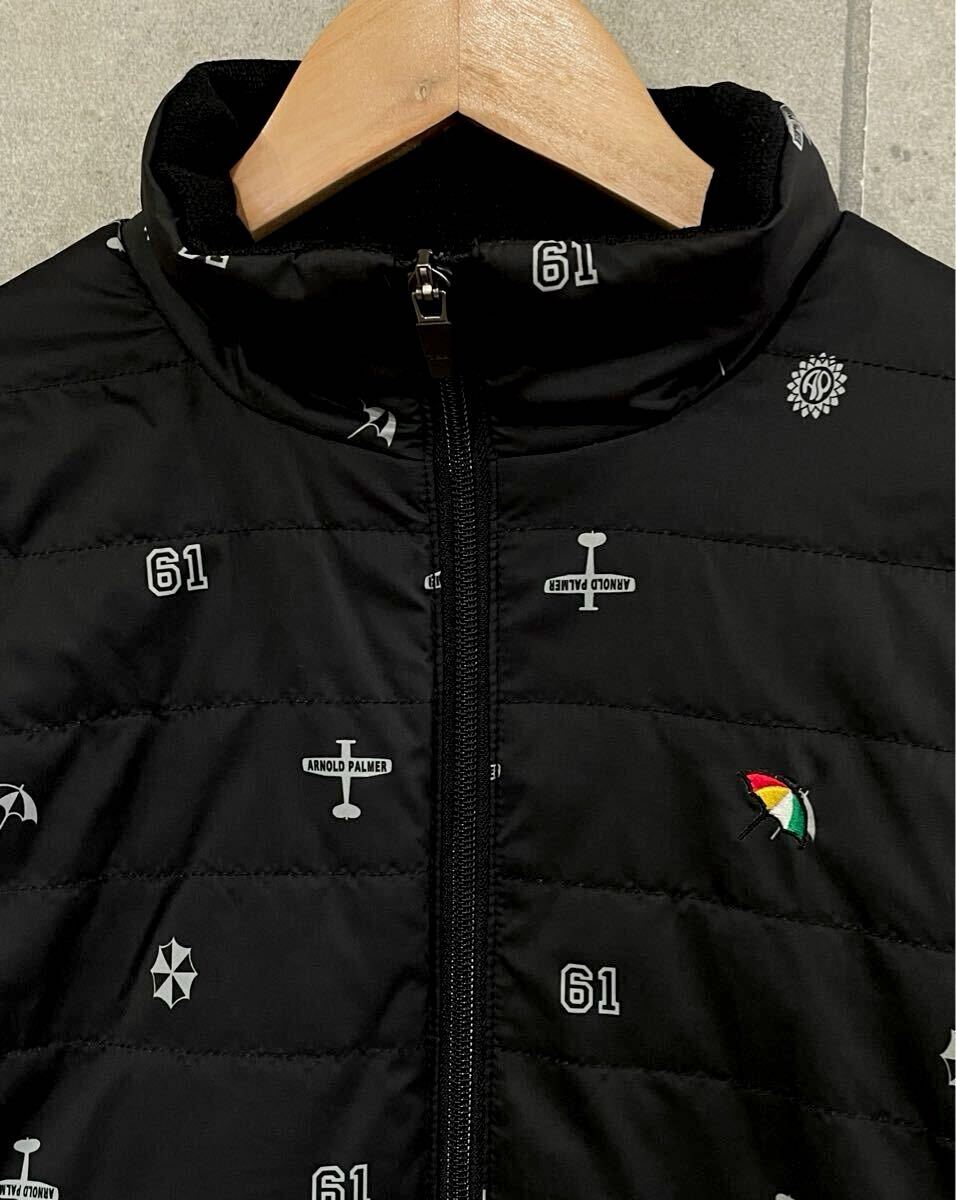 ARNOLD PALMER GOLF アーノルドパーマー ゴルフ 中綿ジャケット ニット切替 総柄 ブラック