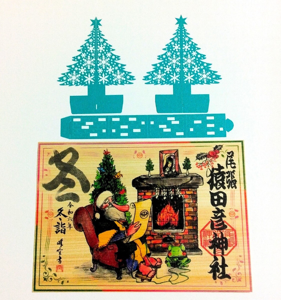 特別・少量限定≪切り絵・木製:クリスマス・ツリー緑≫【愛知 尾張猿田彦神社(特別御朱印・限定)】伊勢神宮:千勝神社:宇受売神社:木曽川:甲辰:辰:龍:一粒万倍日・天赦日:クリスマス:サンタクロース:成道会:忠臣蔵:冬至:師走:ポインセチア:シクラメン:椿:蛇:正月