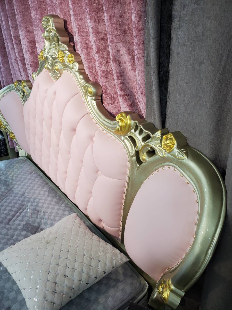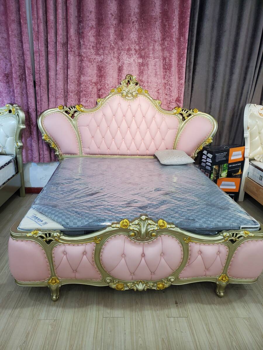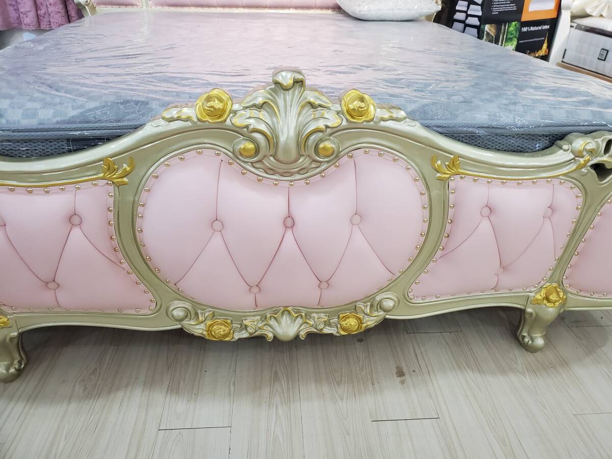 サイズベッドフレーム本体 幅220cm~240cm高さ150cm~170cm奥行き220~240cmマットレスサイズ :W 180cm ~200cm長さ 200 cm*若干の誤差はご了承ください。素材 天然木、表張材本革、裏張材(合成皮革)、高密度ウレタンソファーにあるクッションは付属品です本革防水 防汚、耐久性高密度ウレタン一般的なソファには20〜30kg/程度の密度のウレタンが使用されることが多く、それより密度が高いものは「高密度ウレタン」と呼ばれます。職人によって精細に施された優美な彫刻。 その一つ一つが手彫り仕上げで、味わい深い魅力のある逸品です。脚部はしなやかな猫脚のように、美しい曲線を描いたフォルムです。張地は超繊維革張りになっており透かし彫りに仕上がっております。日々のお手入れがしやすい商品です。木部には繊細な彫刻が施されており、気品溢れる空間を演出します。彫刻部分はプロの職人によるオールハンドメイド仕上げで