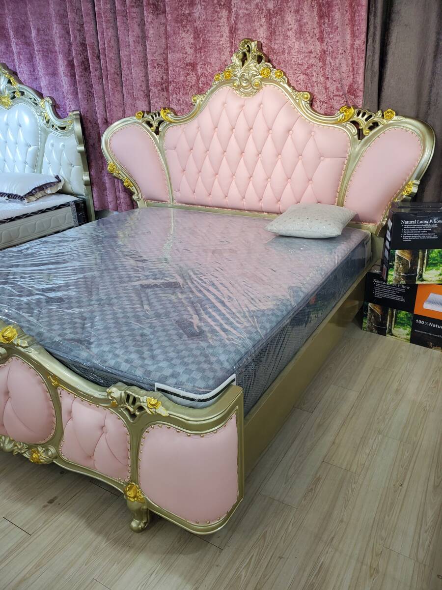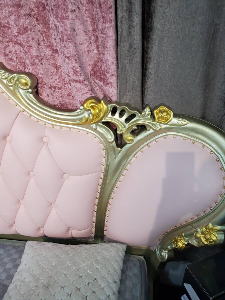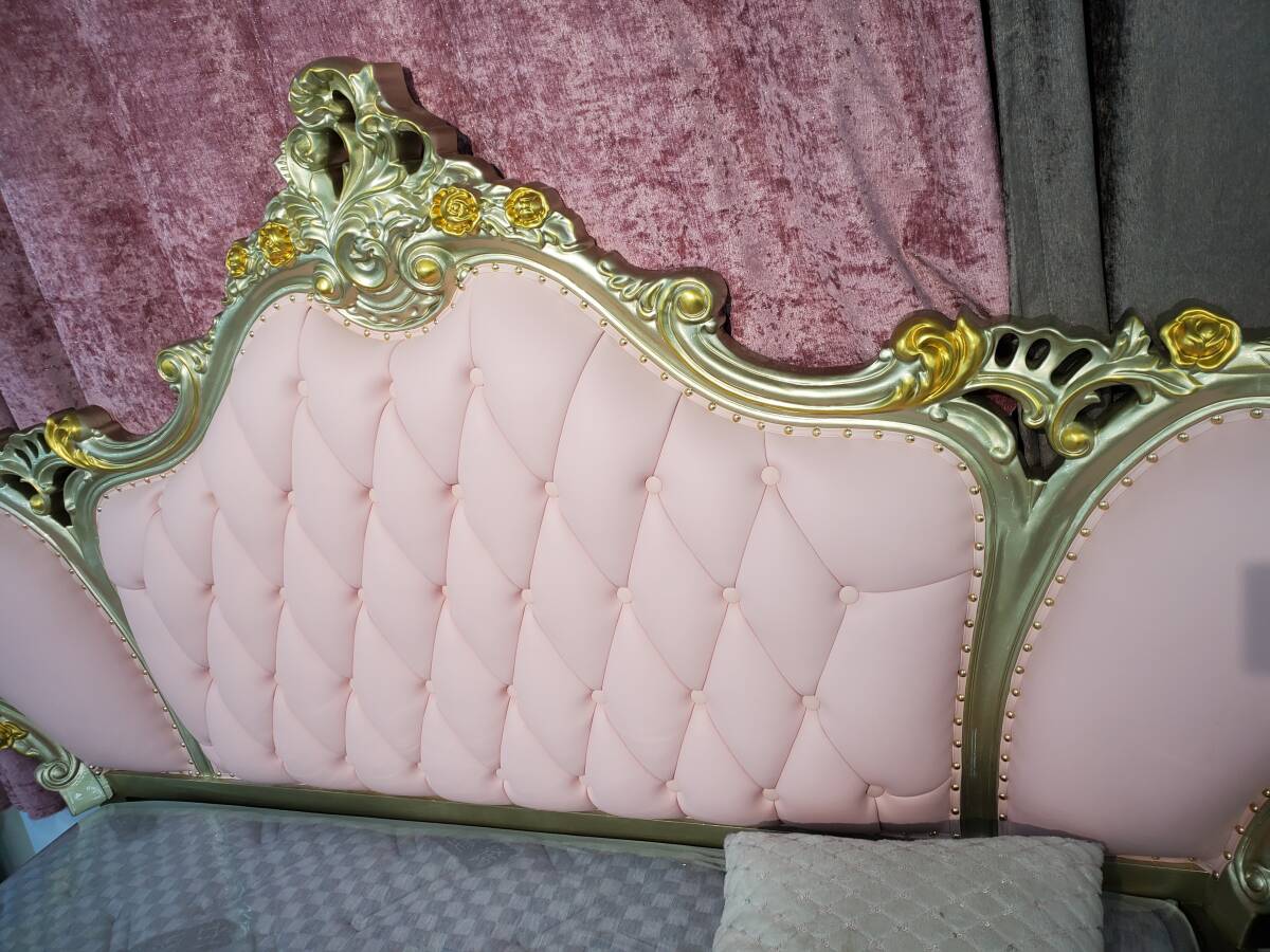 サイズベッドフレーム本体 幅220cm~240cm高さ150cm~170cm奥行き220~240cmマットレスサイズ :W 180cm ~200cm長さ 200 cm*若干の誤差はご了承ください。素材 天然木、表張材本革、裏張材(合成皮革)、高密度ウレタンソファーにあるクッションは付属品です本革防水 防汚、耐久性高密度ウレタン一般的なソファには20〜30kg/程度の密度のウレタンが使用されることが多く、それより密度が高いものは「高密度ウレタン」と呼ばれます。職人によって精細に施された優美な彫刻。 その一つ一つが手彫り仕上げで、味わい深い魅力のある逸品です。脚部はしなやかな猫脚のように、美しい曲線を描いたフォルムです。張地は超繊維革張りになっており透かし彫りに仕上がっております。日々のお手入れがしやすい商品です。木部には繊細な彫刻が施されており、気品溢れる空間を演出します。彫刻部分はプロの職人によるオールハンドメイド仕上げで