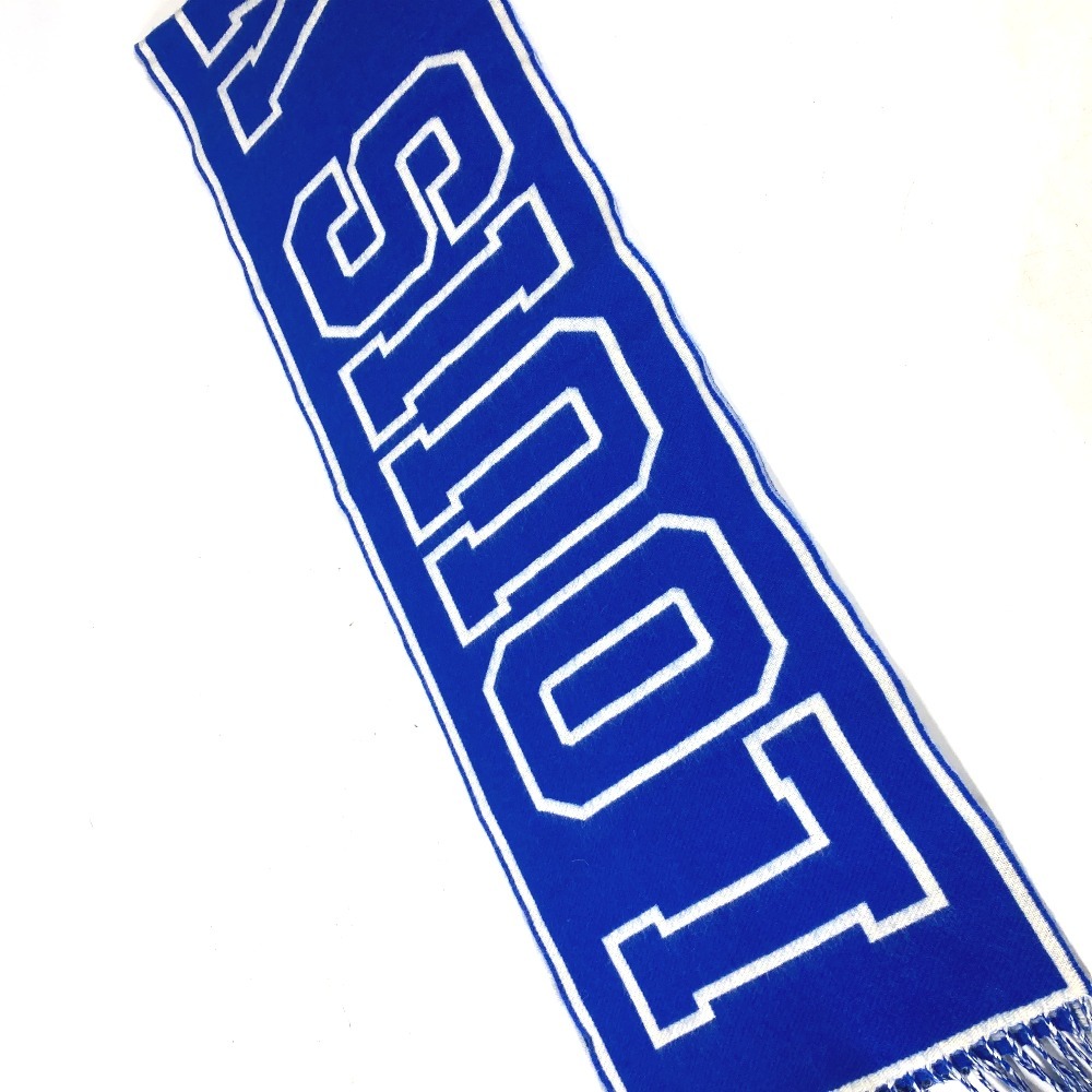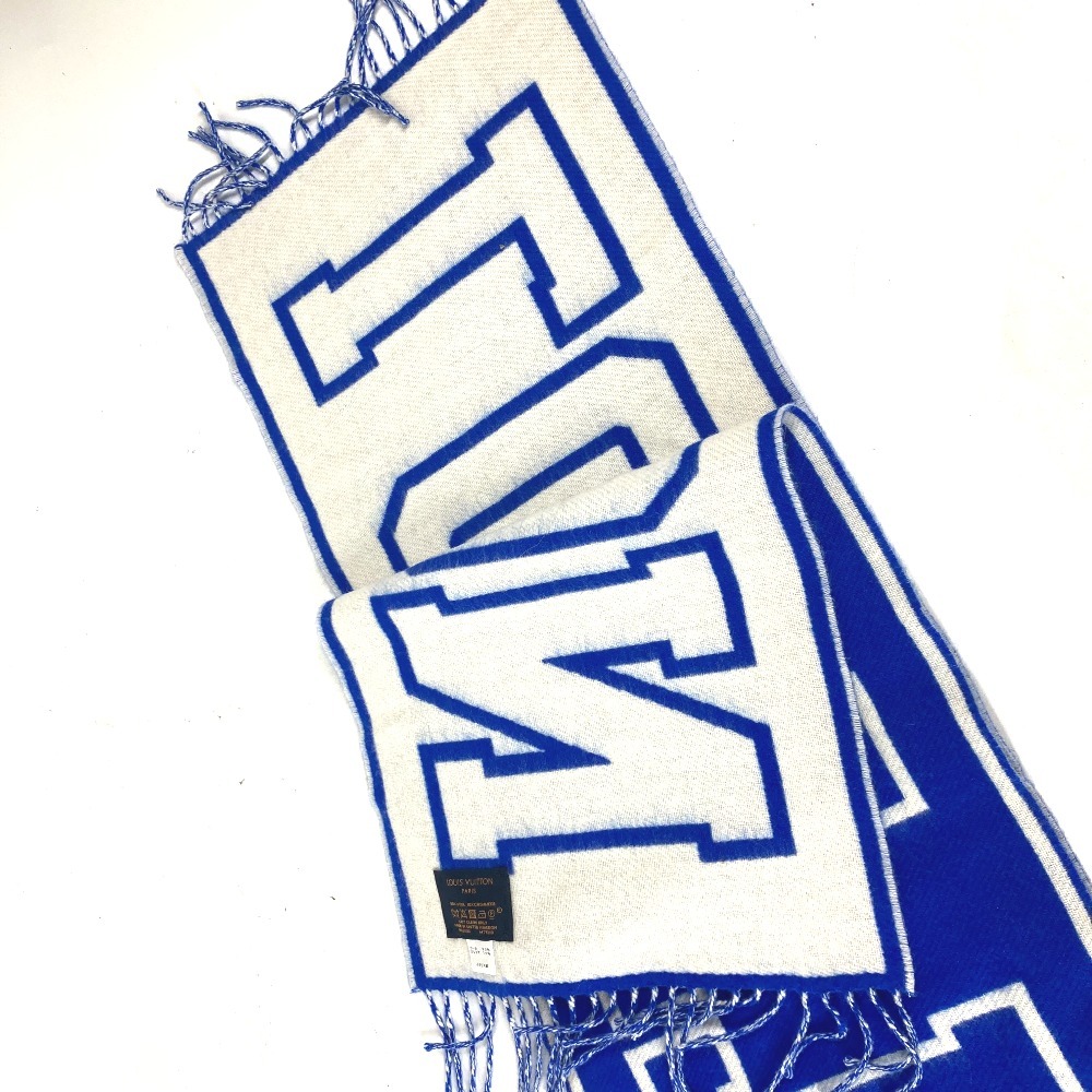 美品 LOUIS VUITTON ルイヴィトン M71318 エシャルプ・シティールイ ロゴ フリンジ バイカラー マフラー ブルー メンズ【中古】