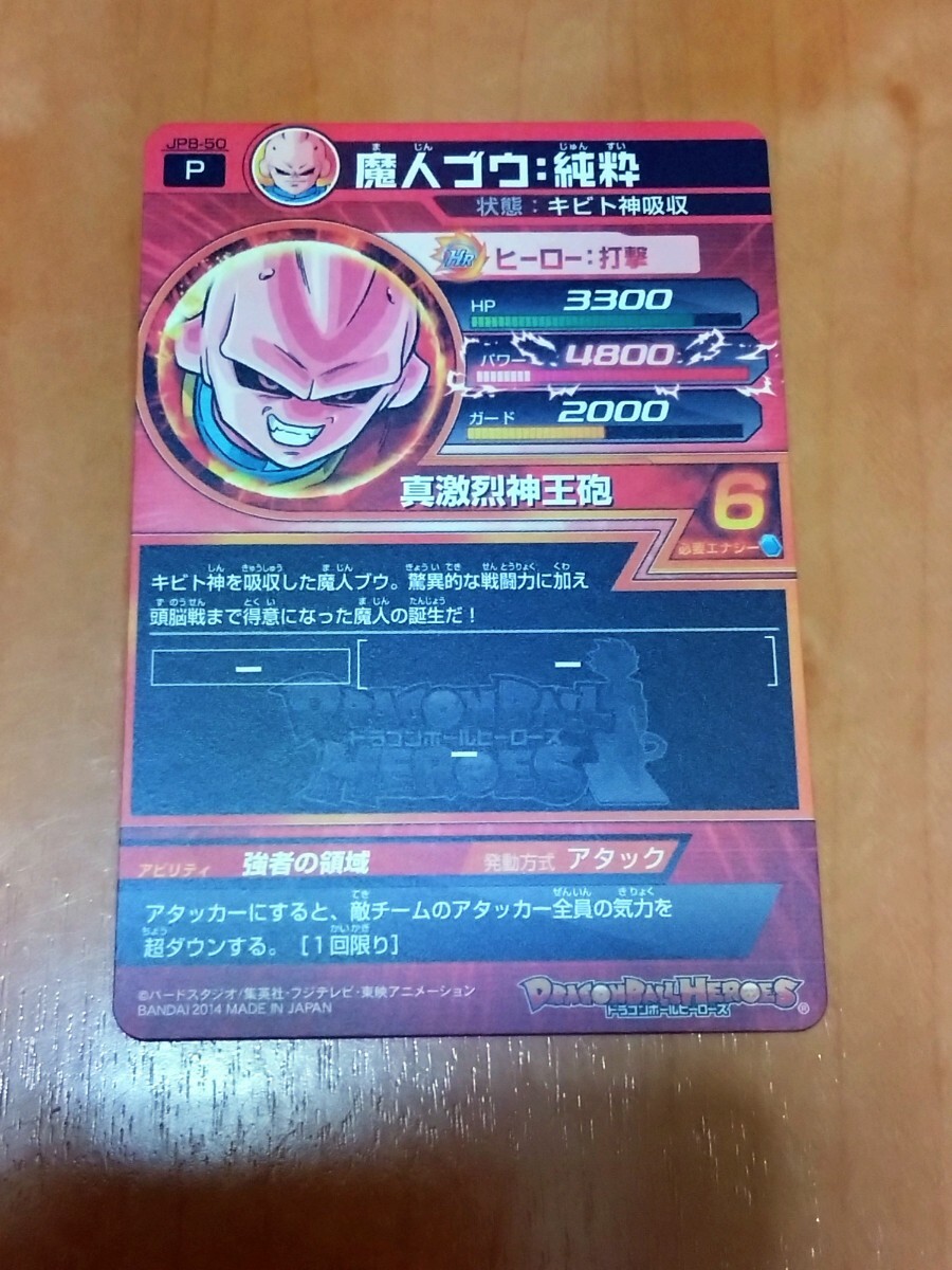 ドラゴンボールヒーローズ プロモ JPB-50 魔人ブウ純粋になります。手渡し後の未使用品になります。初期キズ及び過度に神経質な方の入札はご遠慮ください。