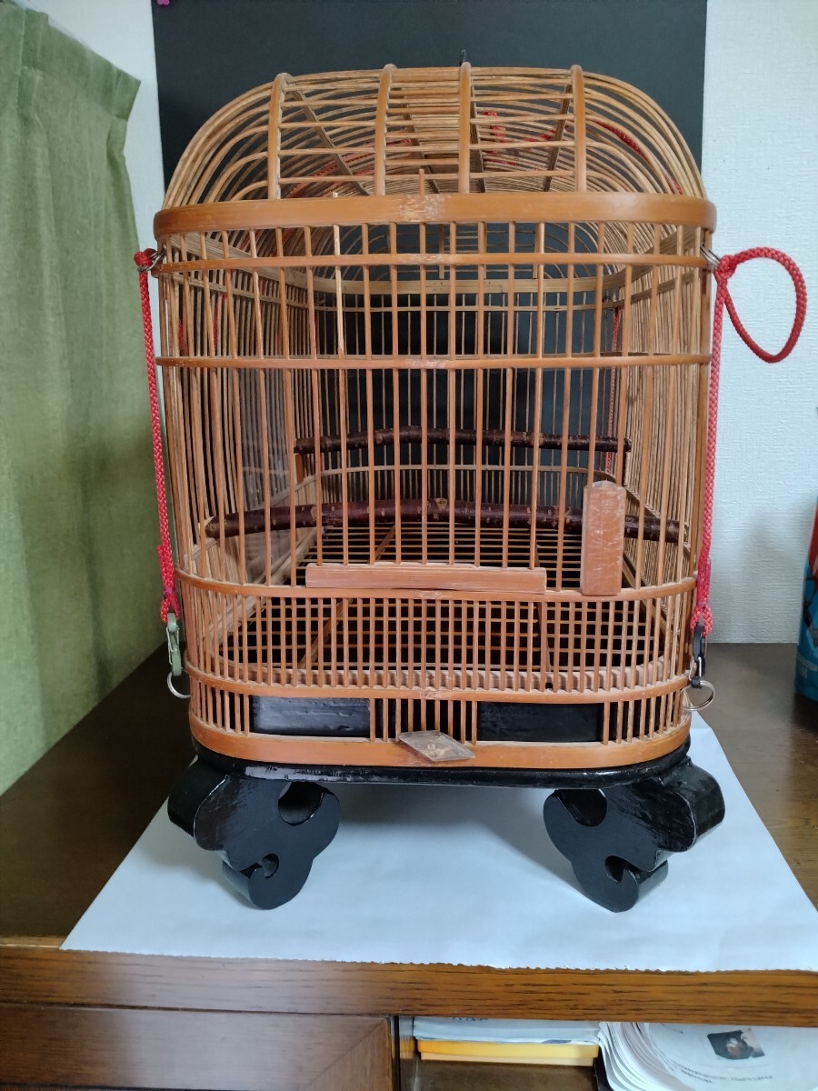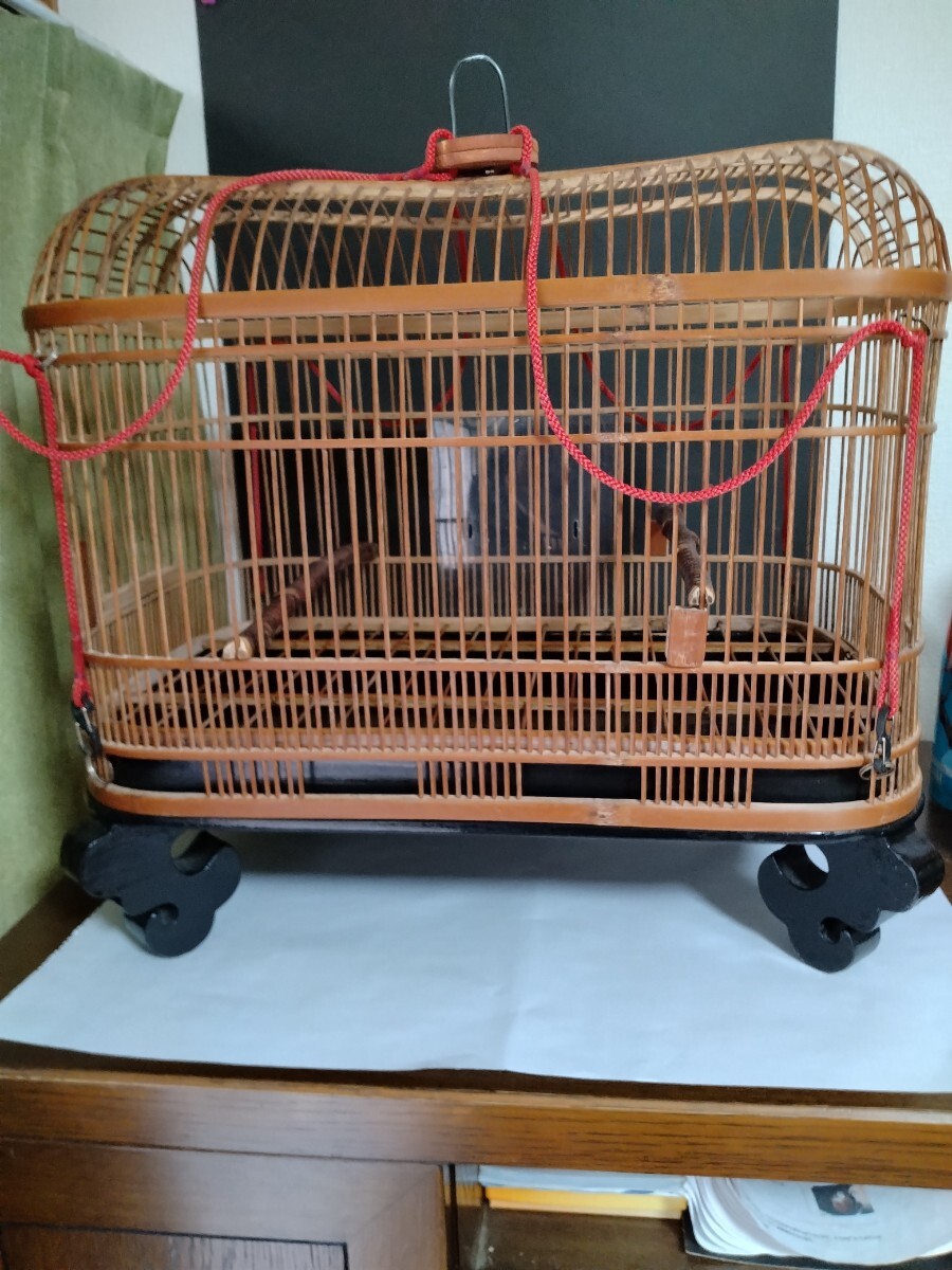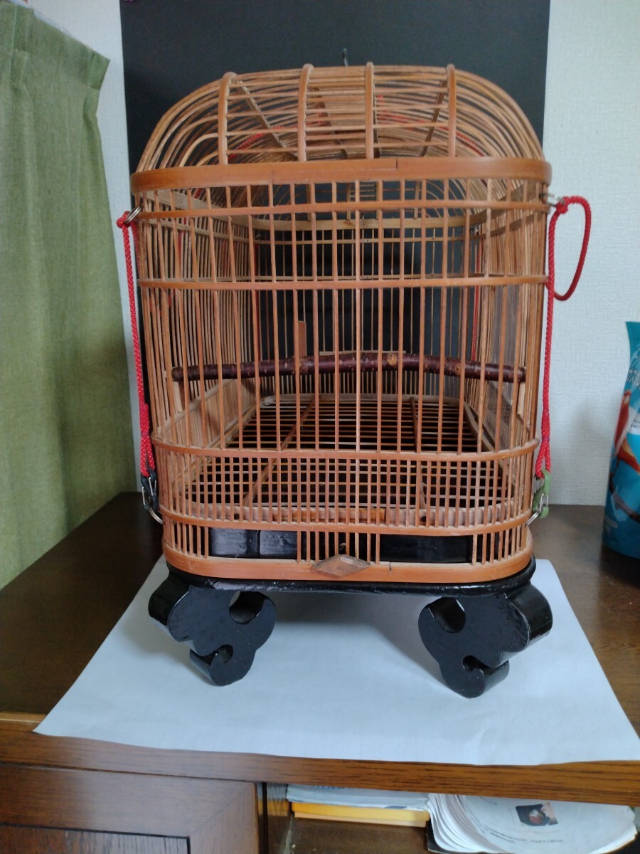 サイズは横幅46.5cm、奥行27.5cm、高さ42cm、雲脚を含めたサイズです。3年前に偶然質屋で見つけて購入しました。最近までカナリアを飼っていましたが、カナリアが死んだため出品することにしました。