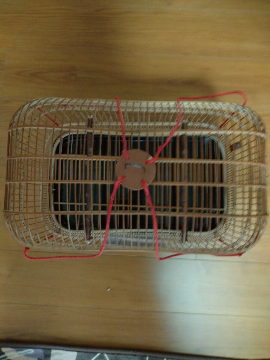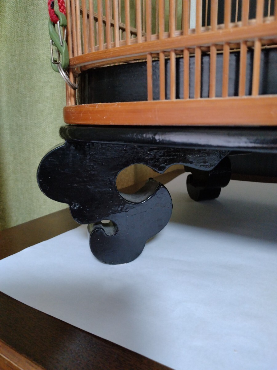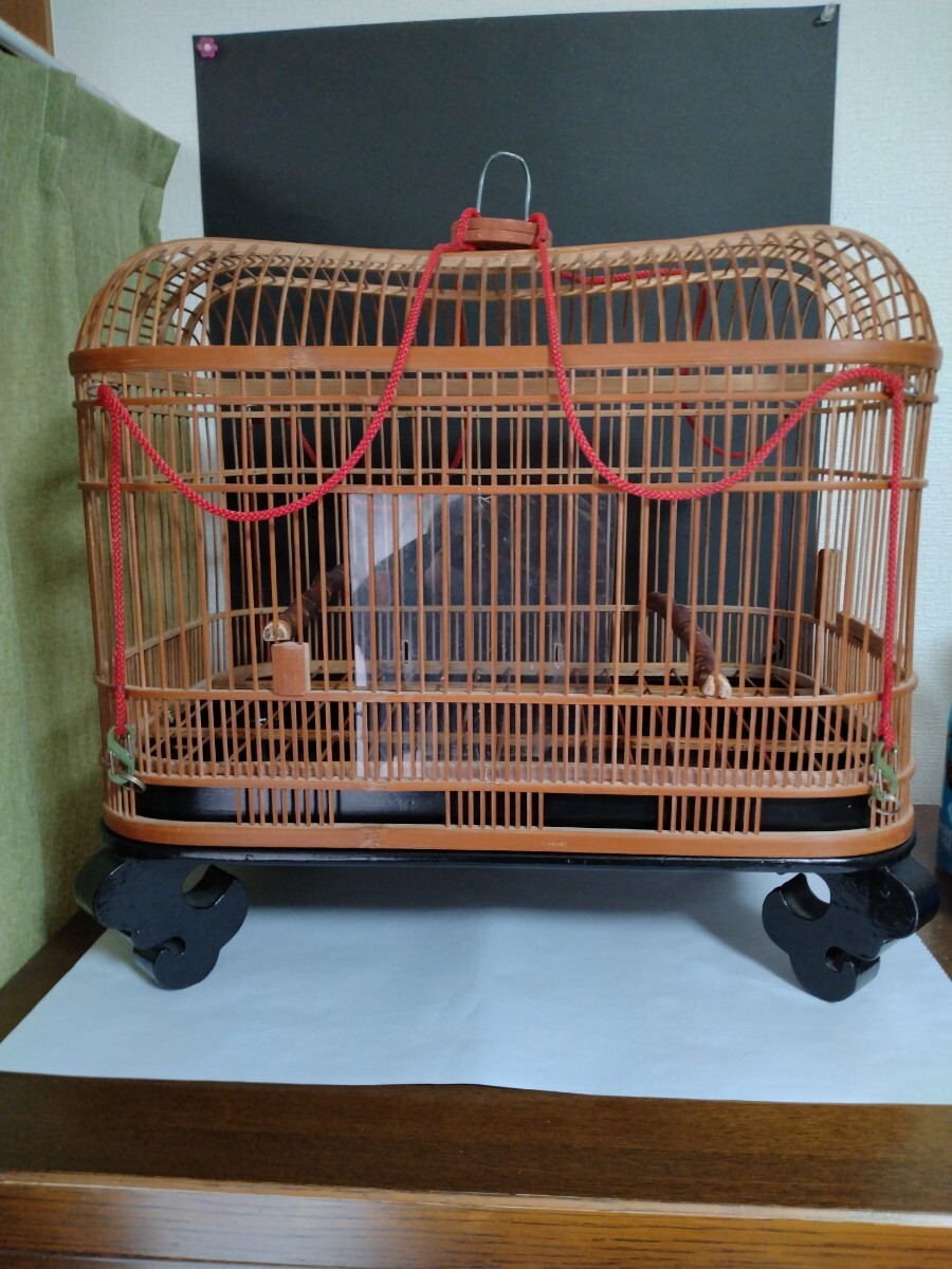 サイズは横幅46.5cm、奥行27.5cm、高さ42cm、雲脚を含めたサイズです。3年前に偶然質屋で見つけて購入しました。最近までカナリアを飼っていましたが、カナリアが死んだため出品することにしました。
