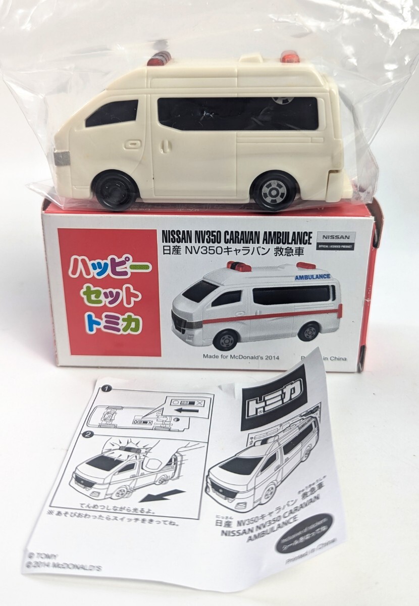 マクドナルド ハッピーセット トミカ 日産 NV350 キャラバン救急車 2014 中古品 光りません 箱に破れあり、シール剥がれ、シール欠品あり ジャンクです