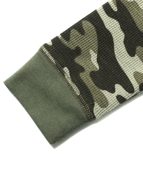 新品 HusHusH ワッフルコットンヘンリー長袖Tシャツ カーキ(127) 14(140cm) 定価2189円