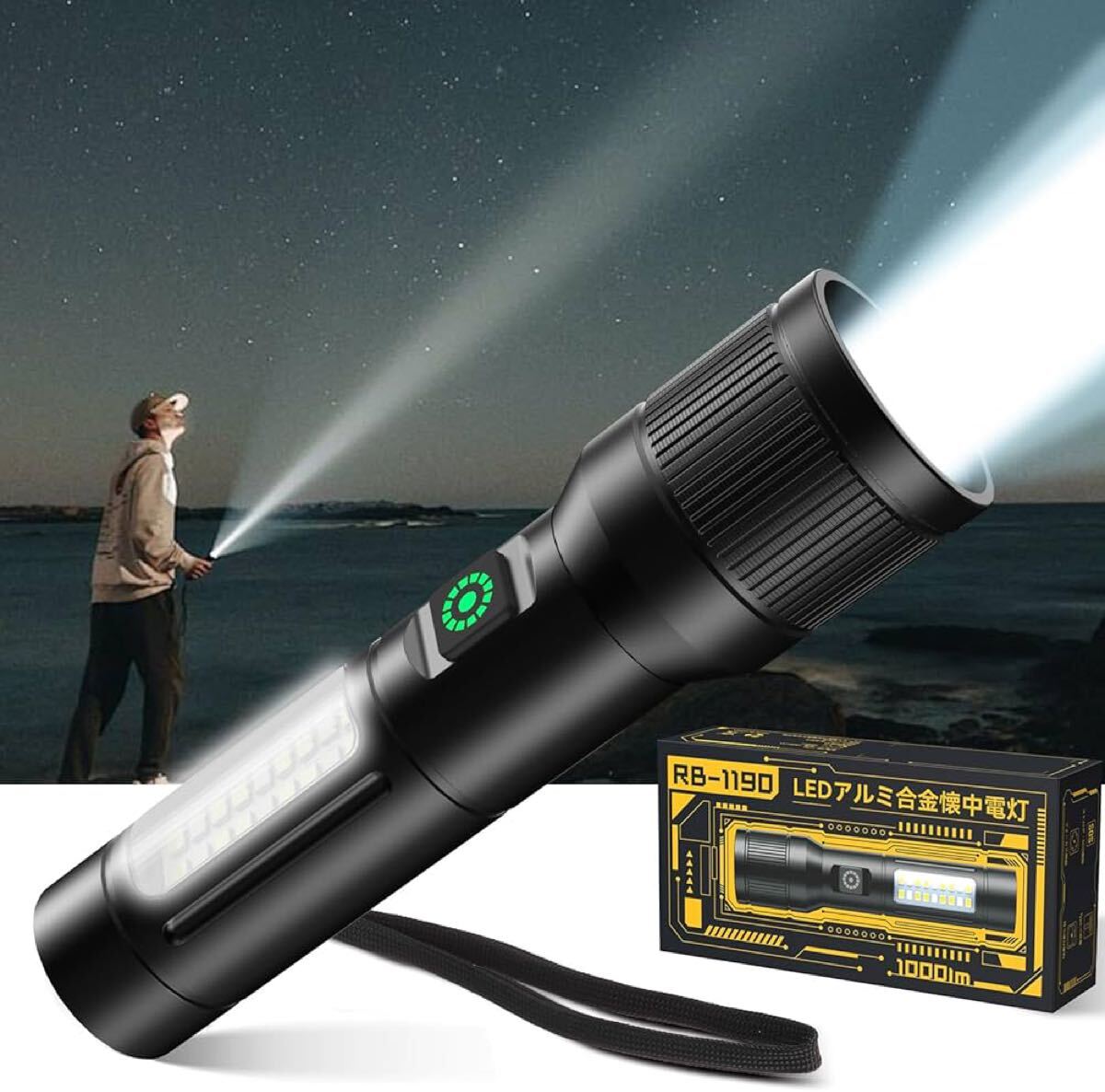 高輝度の LEDを搭載し、最大1000ルーメンの明るさを実現、最大照射距離は500メートルに達します、投射された光束の明るさは完全に同じタイプの懐中電灯を超えて、緊急時にはCOB赤灯の点滅でSOS信号として使用でき、安全性を向上させます。懐中電灯のヘッドを伸縮させることで焦点距離を調整し、遠距離スポットライトまたは広範囲の汎光灯を自由に選択することが可能です。