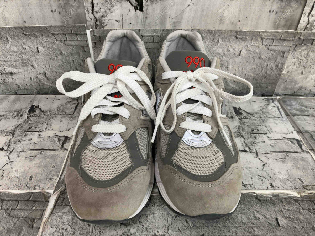 | 箱付き New Balance ニューバランス M990VS2 スニーカー USA製 サイズ27 グレー ・アッパーに汚れあり |