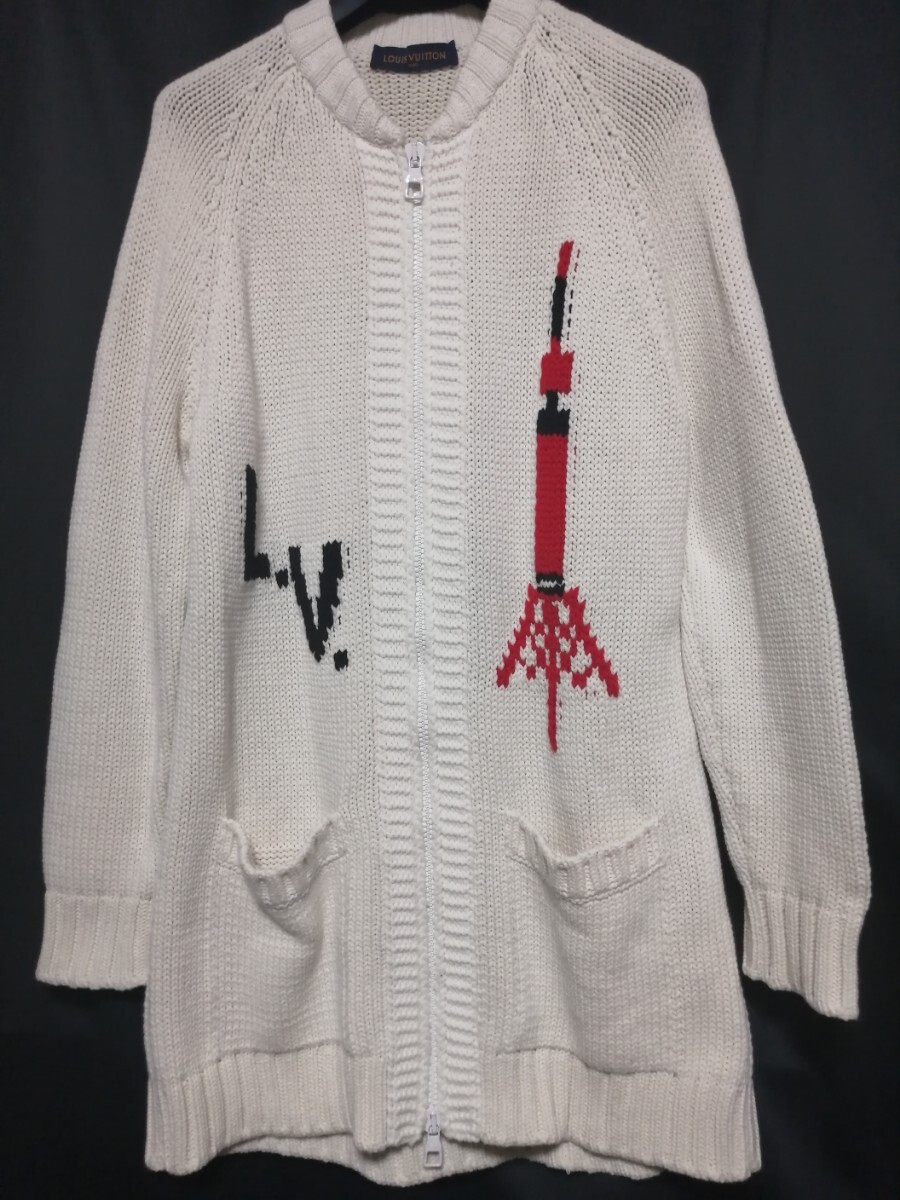 ルイヴィトンでも大人気で希少なカーディガン、その中でもローゲージオーバーサイズよる芸術的アートが施された最高級な豪華でラグジュアリーな逸品