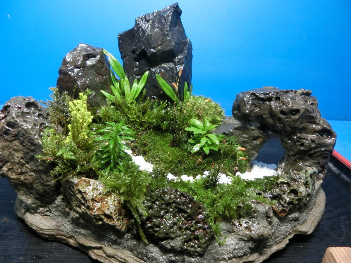 商品説明 | ■ご覧頂きありがとうございます。 ■奇岩風の石をサークル状に並べて荒々しい岩山の風景を創作する苔テラリユム用製作キットの出品です ※貴方の感性と構成で製作してみませんか楽しいですよ。 お子様と共同作業も良いですね、、、 製作キット内容 ■本体容器 1個 テラ(大地)アリウム(場所) ■お任せ各種苔 1パック ヤマコケ、シノブコケ、コツボコケ、スギコケ、オオトラノオゴケ、トウゲシダ、その他(季節によって変更有り) ■基本ソイル (茶) 1袋 本体のサイズによって増減有り ■飾り砂 2種類 各1袋 滝、川、道を表現する砂です 本体のサイズによって増減有り 本体の .テラ(大地)アリウム(場所)サイズ ■W :20㎝ ■D ::13㎝ ■H :15㎝ サイズは概数です。 ※本体の突起部分のみを持って移動、運搬はお避け下さい外れる事も有ります。 基本製作方 ①各種苔を軽く水洗いする ②本体の石、セメント塗部に軽く霧吹きする ④凹みへソイルを入れる、スプレ-等でたっぷり水を掛け好みの形状にして軽く押し固め 好みの苔、シダ類を植え付ける ⑤全体を調整してにたっぷり霧吹きする ※詳しい植え付け法、作り方はyoutubeの道草さん、苔フイルムさんが詳しく載せられています参考にされて下さい ■苔テラリユム、苔玉と、苔盆栽、ミニ盆栽を暮らしの中に、、、、 愛らしい姿で私たちを和ましてくれる苔玉と、季節の移ろいを身近で感じられる苔テラリユムと苔盆栽やミニ盆栽。 苔玉と苔盆栽等のある空間は、緑と身近に触れ合える、心地よい暮らしがあります。 ■オープンタイプの苔テラリユムの管理法は、平皿やお盆に置き、朝又は夕方に可愛い可愛いと声をかけ乍らたっぷりと霧吹きしてください。 すると苔たちはきっと答えてくれるはずです。 ■万が一に苔たちが元気が無くなった場合は、テラ(大地)アリウム(場所)は半永久的に使用できますので 新たな苔たちで新たな構成で苔テラリユムを作り直せる事も出来ます。 ■お送りするおまかせ苔類は季節によって変わる事もあります。 | |