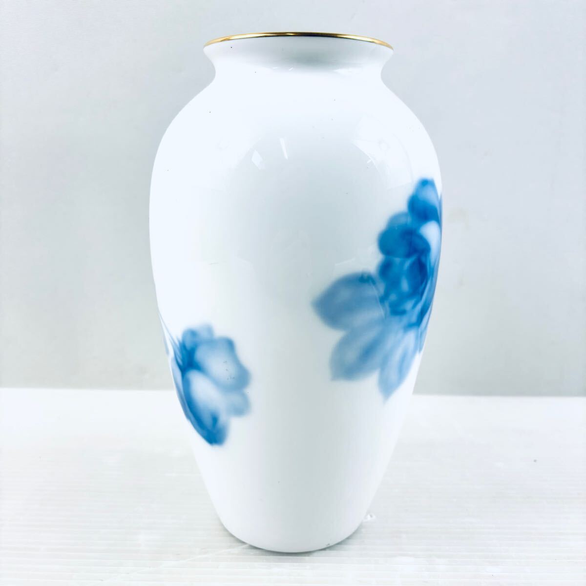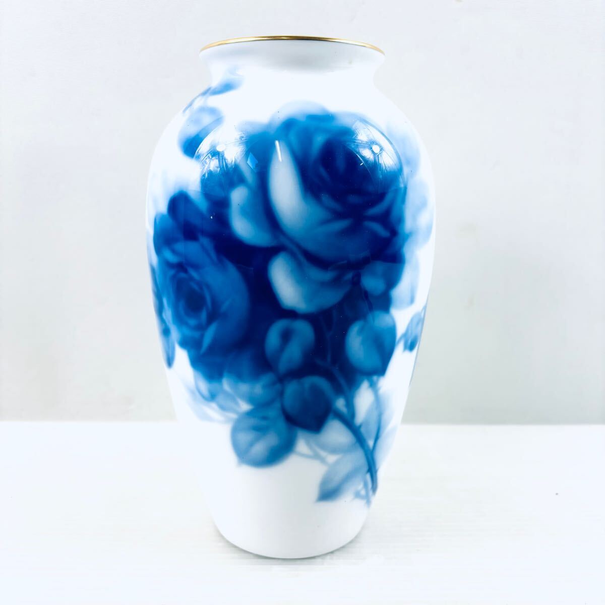 大倉陶園 ブルーローズ 金縁 花瓶 フラワーベース