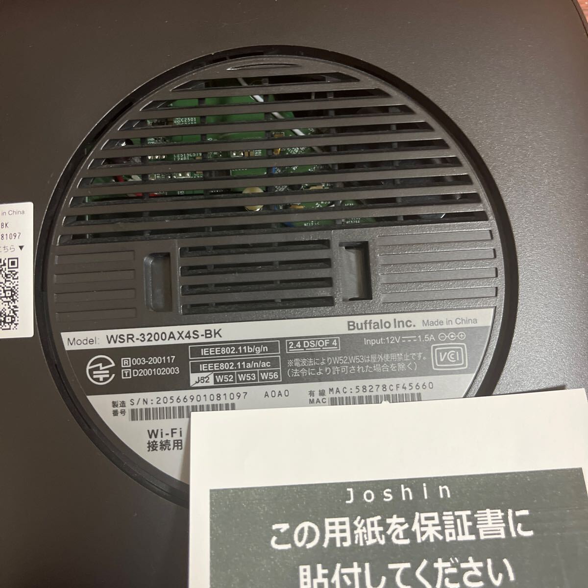 BUFFALO Wi-Fiルーター WSR-3200AX4S-BKです。