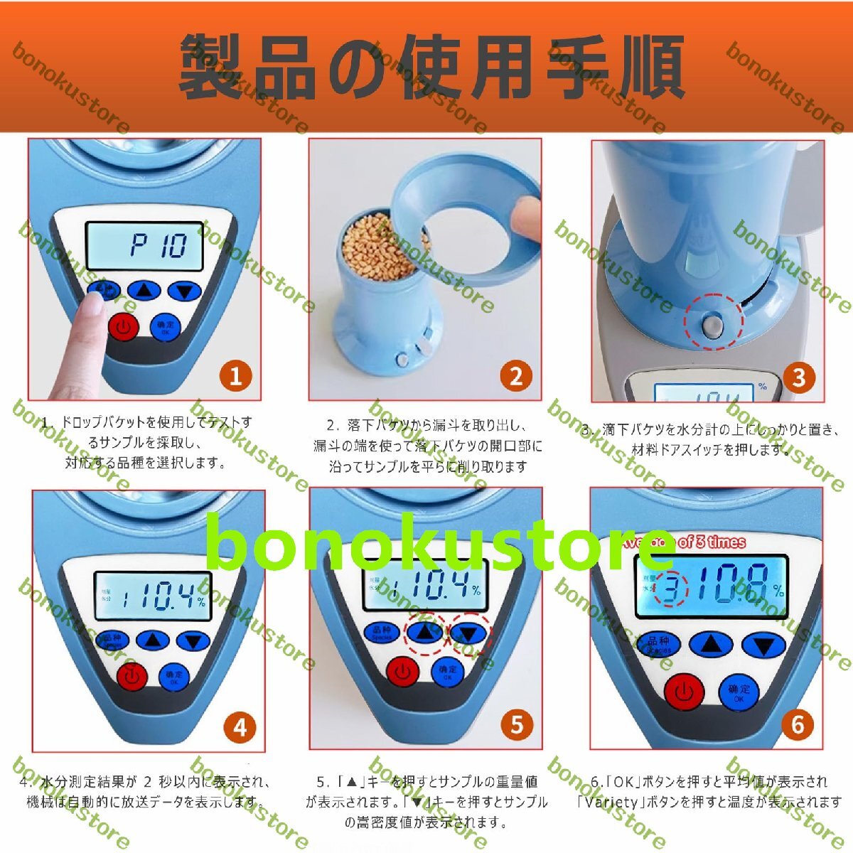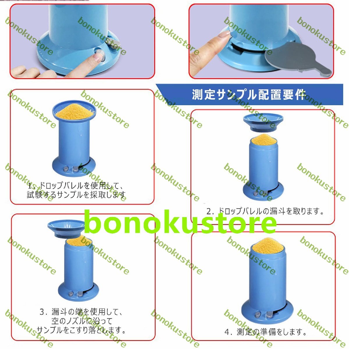 水分測定手順:まず測定物質をバレルに入れ、次にブランキングバレルを水分計に置き、メーターを押します操作インターフェースの上下キーを押して項目名を選択し、ドアスイッチを押して待ちます3 秒後、水分値の結果が直接表示されます。仕様:試験対象:米、小麦、とうもろこし、豆、菜種などの食品およびその他の非金属穀物サンプル。テスト範囲: 3 -- 35%繰り返し誤差:0.2%以下試験誤差:0.5%以下(主に水分範囲)テスト時間: 10 秒以下サンプル:重さ150g(特殊サンプル除く)電源: 単 3 形アルカリ乾電池 4 本 (別売り) または外部 9V DC 安定化電源自動化スイッチ オフ: 3 分以内に操作が行われると、装置は自動的にオフになります。環境温度:0~40℃相対湿度: 80% 以下温度補償: 自動化サイズ:110×195×200mm/4.3×7.7×7.9インチ。製品には以下が含まれます:1 *穀物水分計