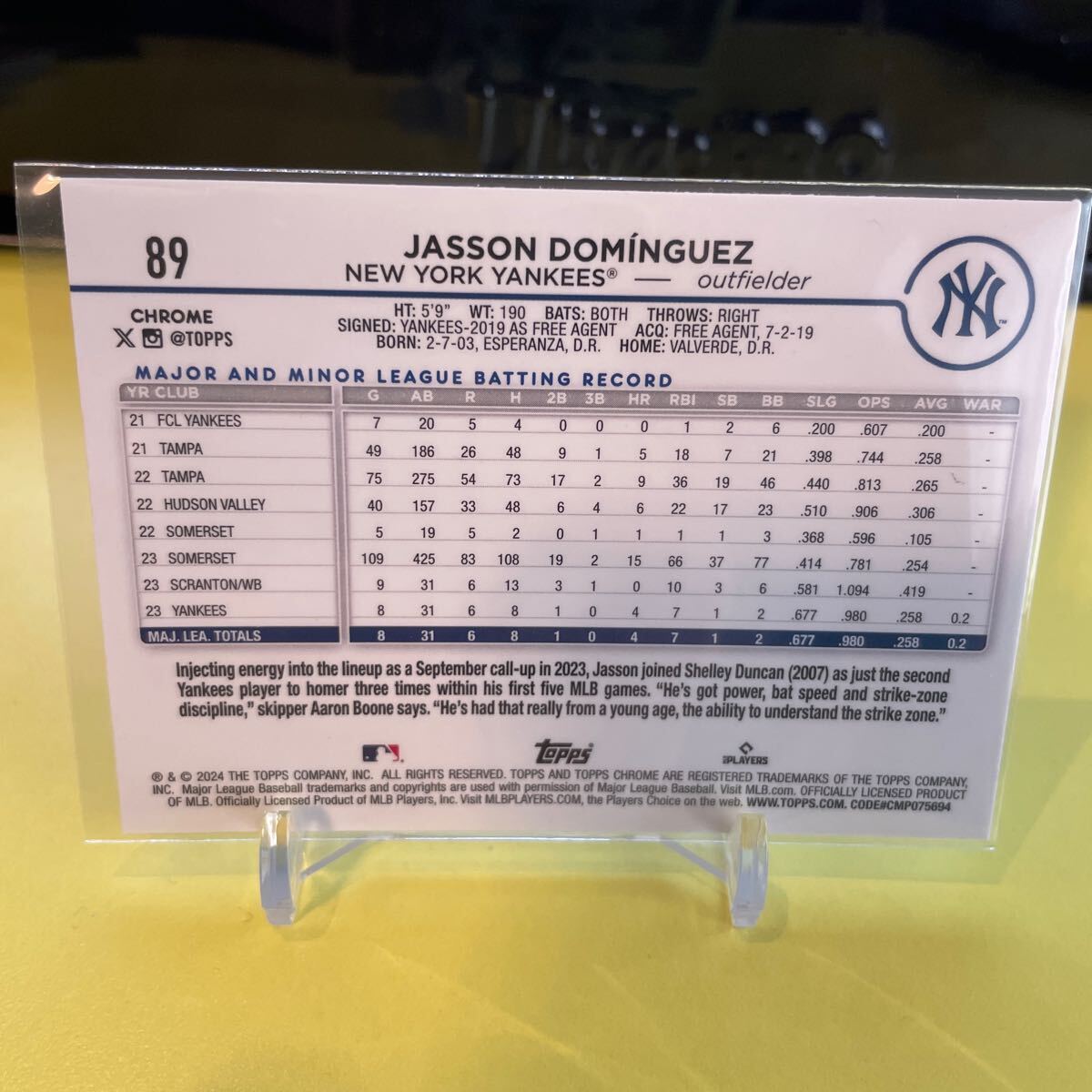 2024 Topps Chrome - #89 Jasson Dominguez (RC) New York Yankees ドミンゲス ヤンキース MLB baseball カード