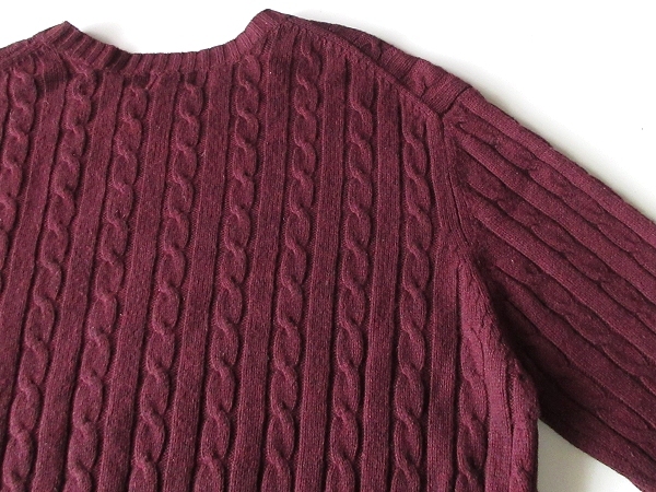 希少 90s-00sビンテージ L.L.BEAN エルエルビーン ウール ケーブルニット アランセーター XXL バーガンディ 大きいサイズ USA企画