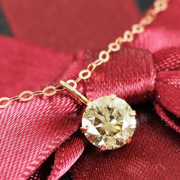 繊細で温かみのあるシャンパンカラーのダイヤモンドが、エレガントに輝く一粒ネックレスです。