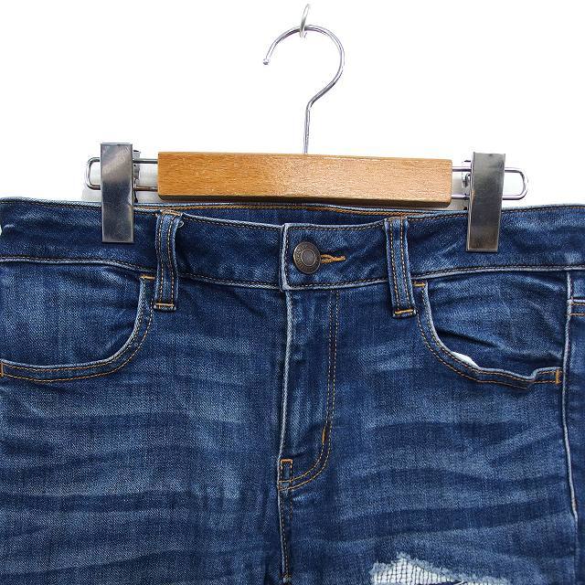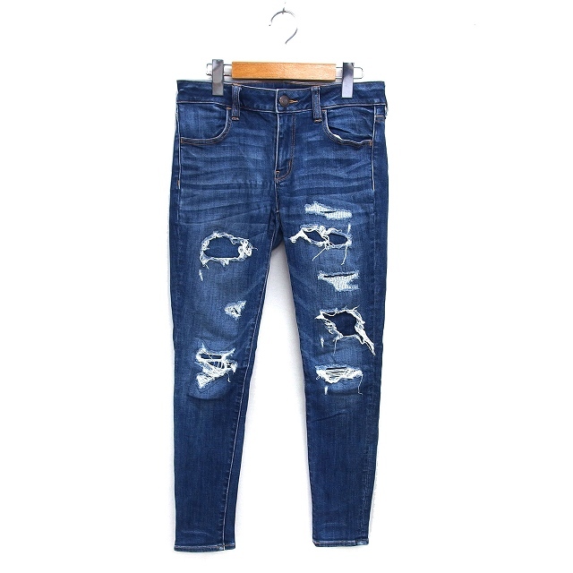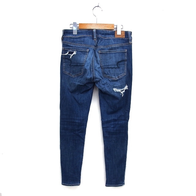 アメリカンイーグル AMERICAN EAGLE デニム ジーンズ スリム ひげ加工 ダメージ加工 ストレッチ コットン混 6 青 ブルー /NT16 レディース