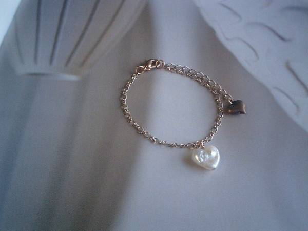 可愛いお気に入り・・シリーズです♪ハート&ハート・・淡水パールのハートのブレスレットです♪小さなハートが可憐な表情です♪10ミリのハートの淡水パールに華奢なピンクゴールドのチェーンを合わせました♪長さは全長23センチ位で調節自由です♪♪お揃いのブレスレットやネックレスやピアスも出品しています♪シンプルで飽きのこないいつまでも着けられるデザインを考えて作りました!ハンドメイドをご理解頂いてノークレーム、ノーリターンでお願いします