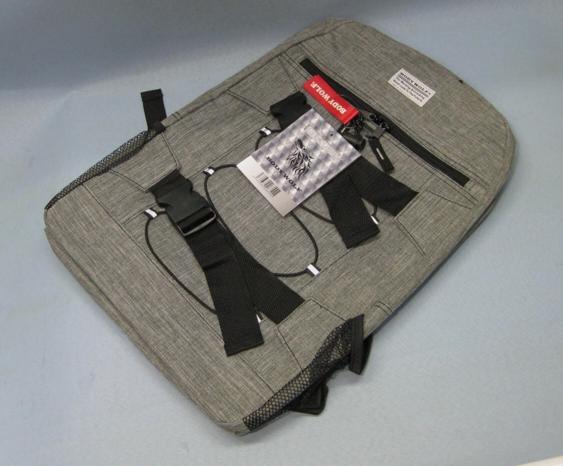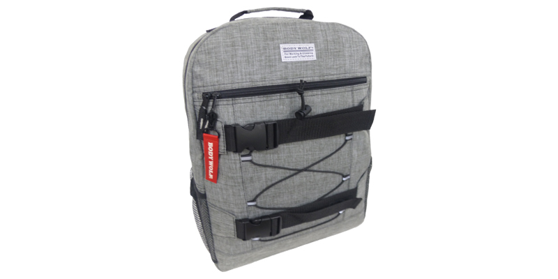◇前面ファスナーにはBODY WOLFのロゴが印象的な取り外し可能なストラップが付いています。