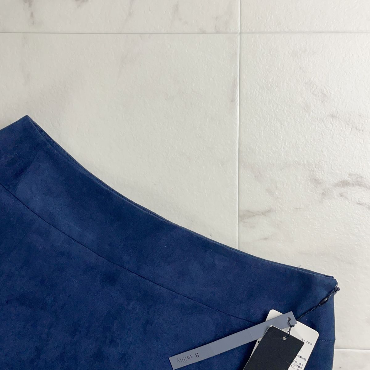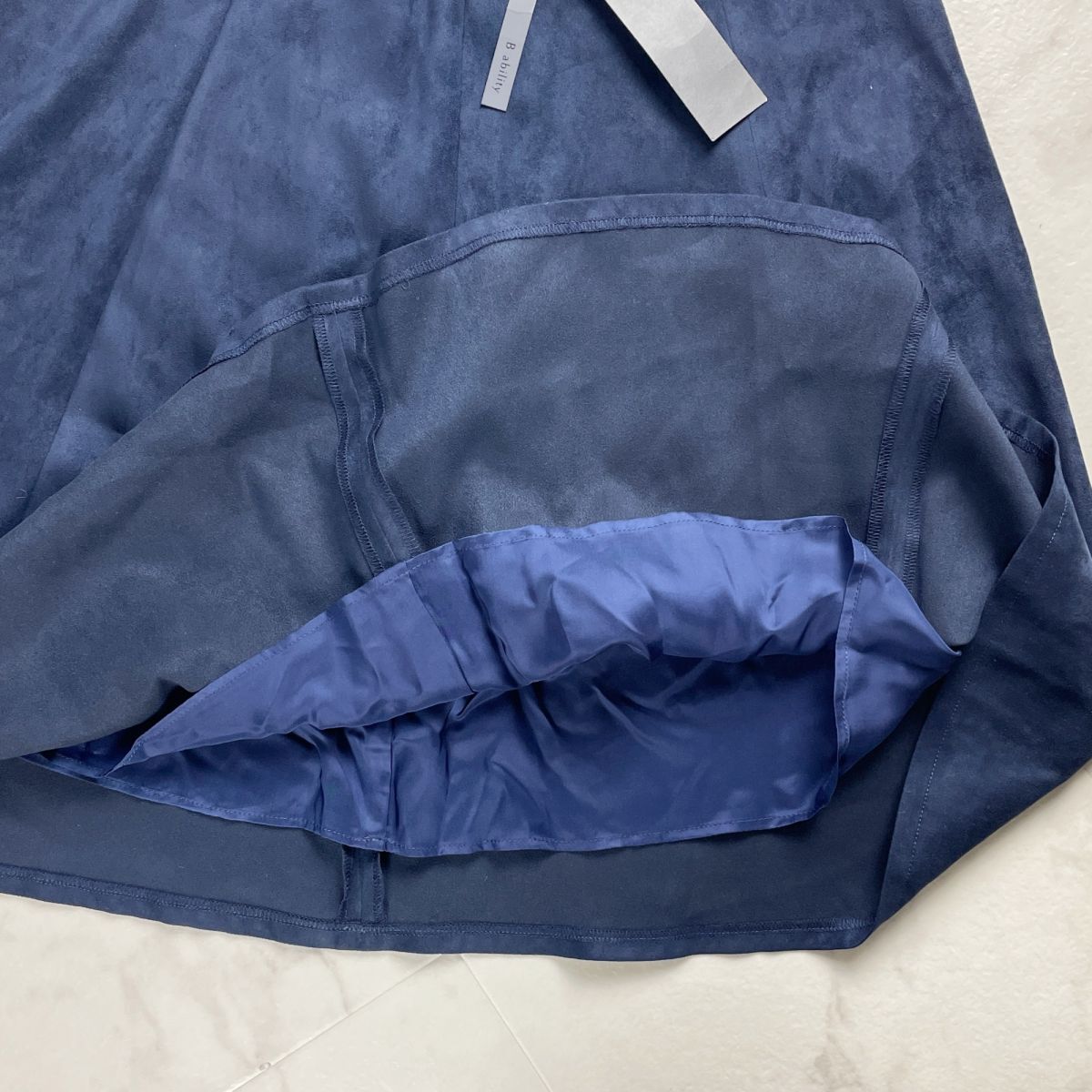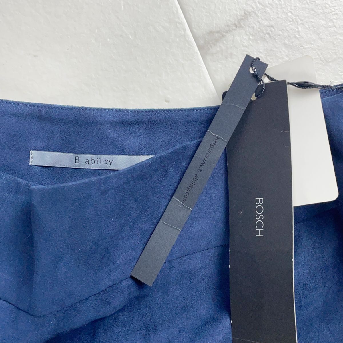 新品未使用 B ability ビー アビリティ ボッシュ アシンメトリーデザインフレアスカート サイドジップ 膝丈 裏地あり 紺 サイズ36*TC914