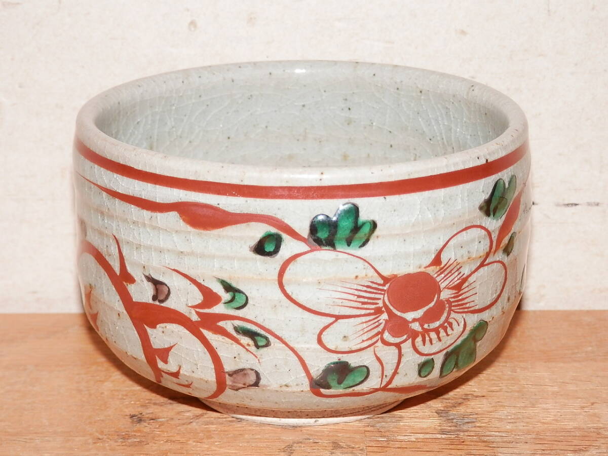 渋草焼 赤絵茶碗 渋草柳三 横10.5cm 高さ7cm 箱なし 茶道具 陶器