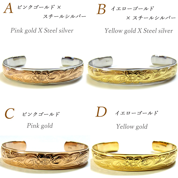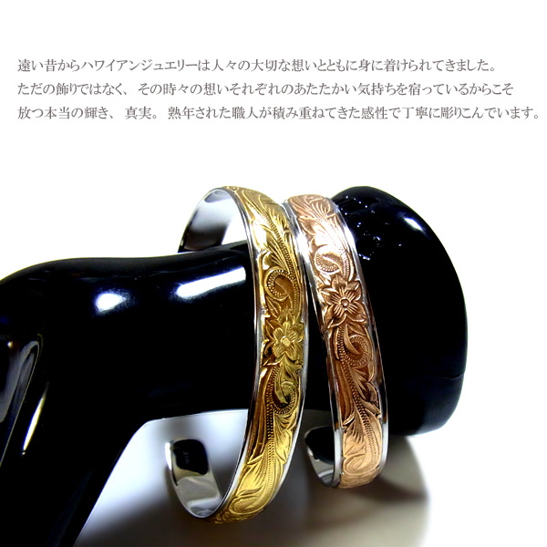 ハワイアンジュエリー ブレスレット バングル ゴールド プルメリア スクロール ホヌ ハワイアンデザインがとても魅力的!