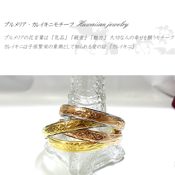 ハワイアンジュエリー ブレスレット バングル ゴールド プルメリア スクロール ホヌ