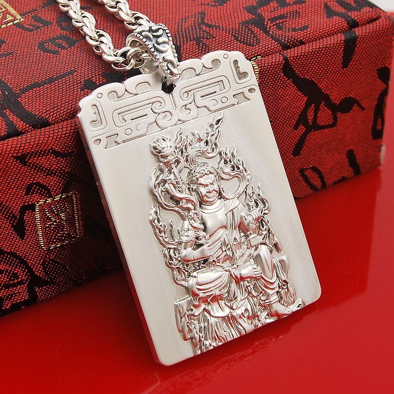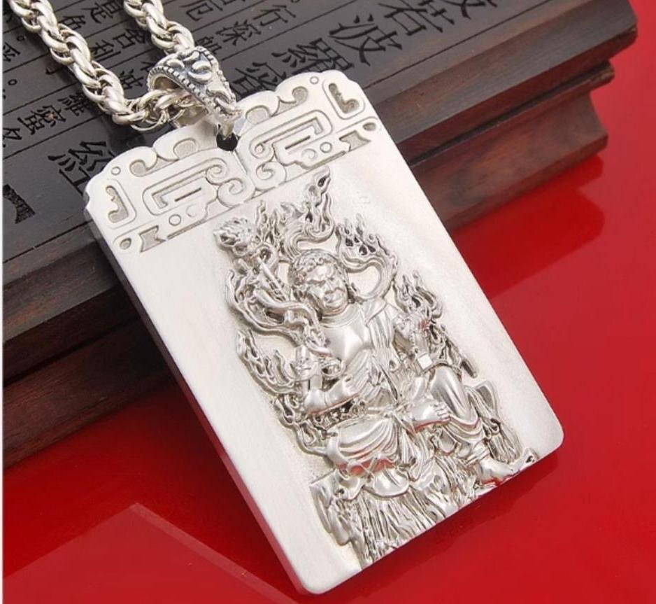 不動明王ペンダント ネックレス お守り御本尊 S999純銀 (酉年生まれ) 厄除け十二支守り本尊 高さ50mm