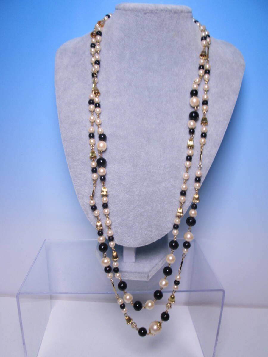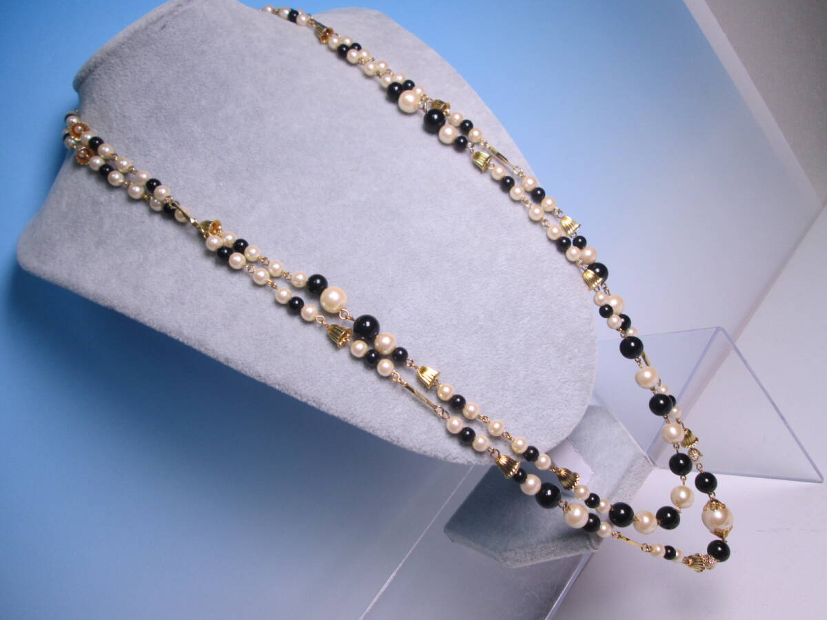 ☆ブラック/パール 2連ロングネックレス パーティー・コスチュームジュエリー/アクセサリー