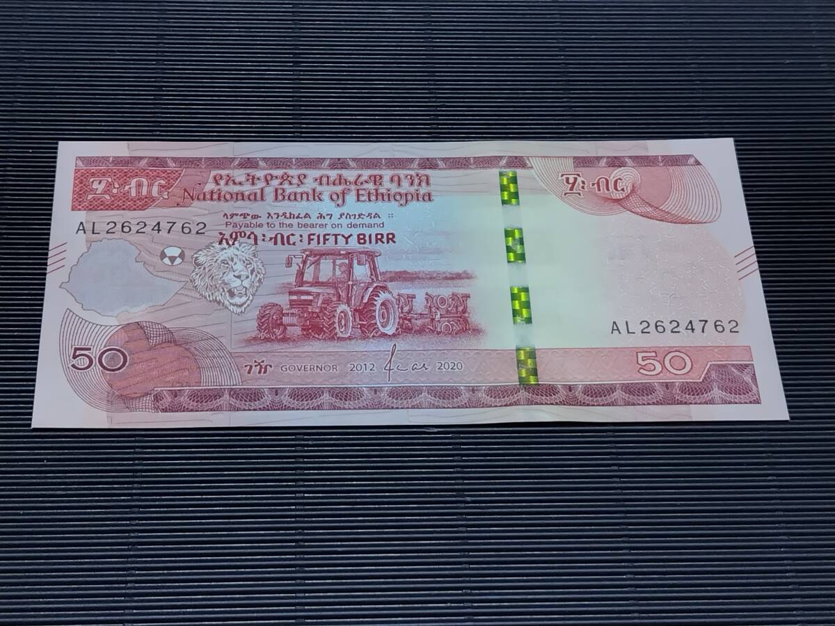 エチオピア 50 Birr札  コレクション向きのピン札  2020年  未使用~甘い未使用   トラクター p-W56 #AL2624761