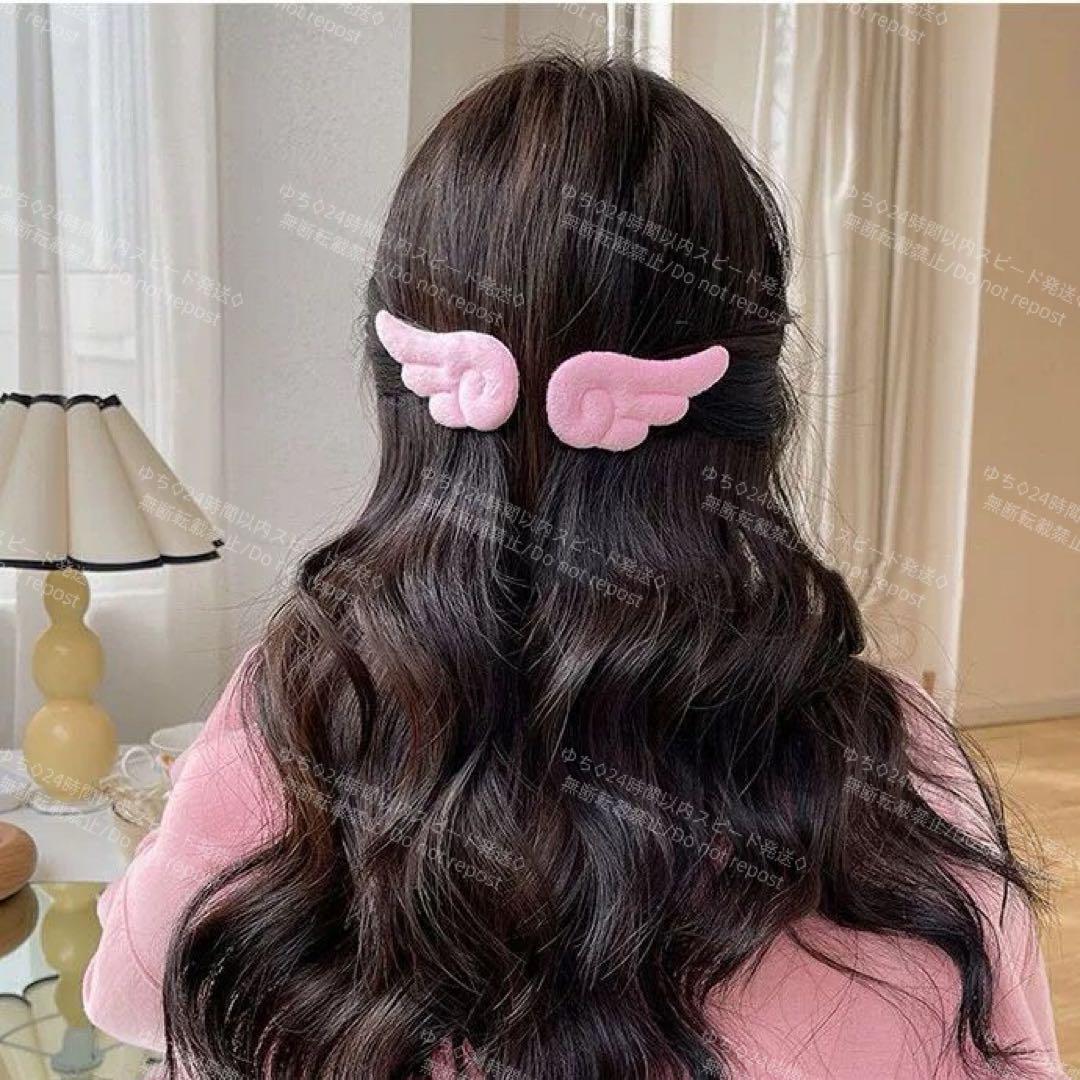 天使の羽 翼 ヘアクリップ ヘアピン ヘアアクセサリー 髪飾り 髪留め パッチン留め ヘアアレンジ エンジェル オシャレ 可愛い ピンク