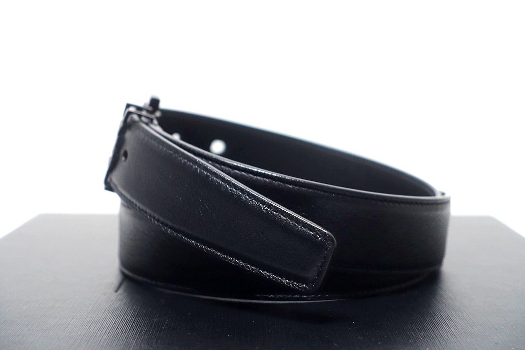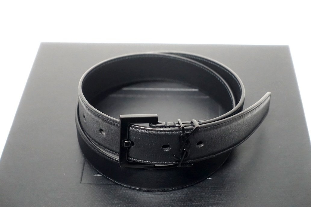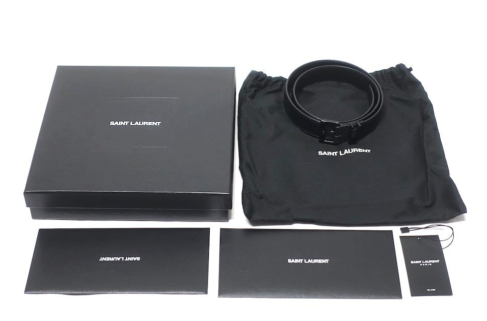 定価9.5万 極美品 SAINT LAURENT PARIS サンローラン カサンドラ ベルト 634440 YSLロゴ レザー ブラック メンズ 80