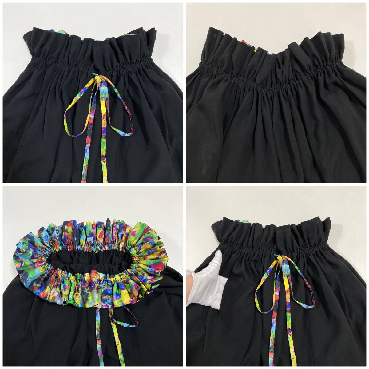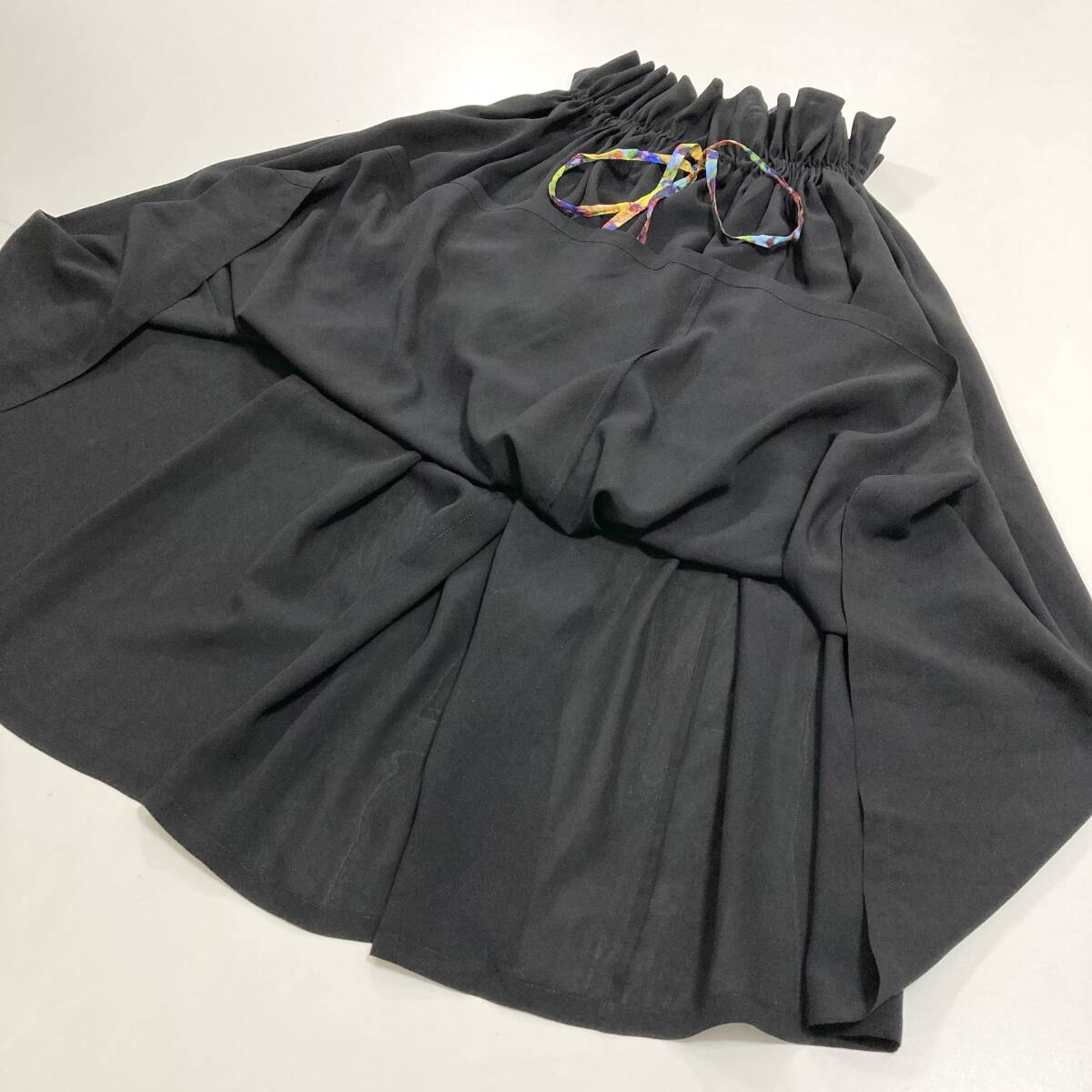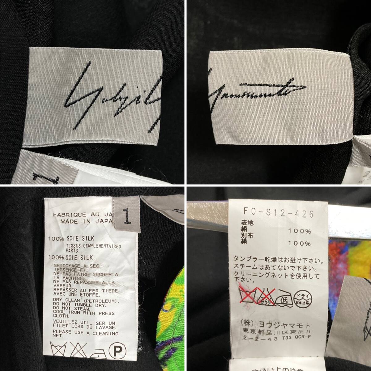 2点セット Yohji Yamamoto Femme シルク 100% 総柄 切替 ボリューム スカート レギンス 黒 1サイズ ヨウジヤマモト archive 4100070