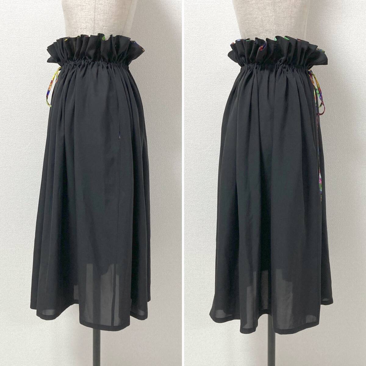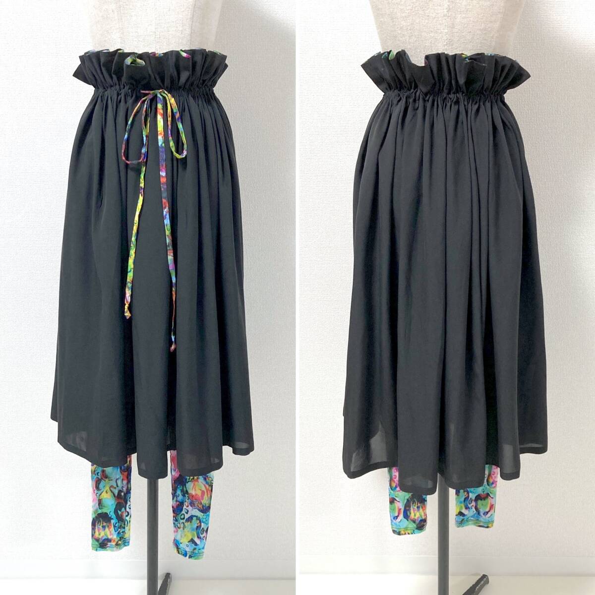 2点セット Yohji Yamamoto Femme シルク 100% 総柄 切替 ボリューム スカート レギンス ブラック