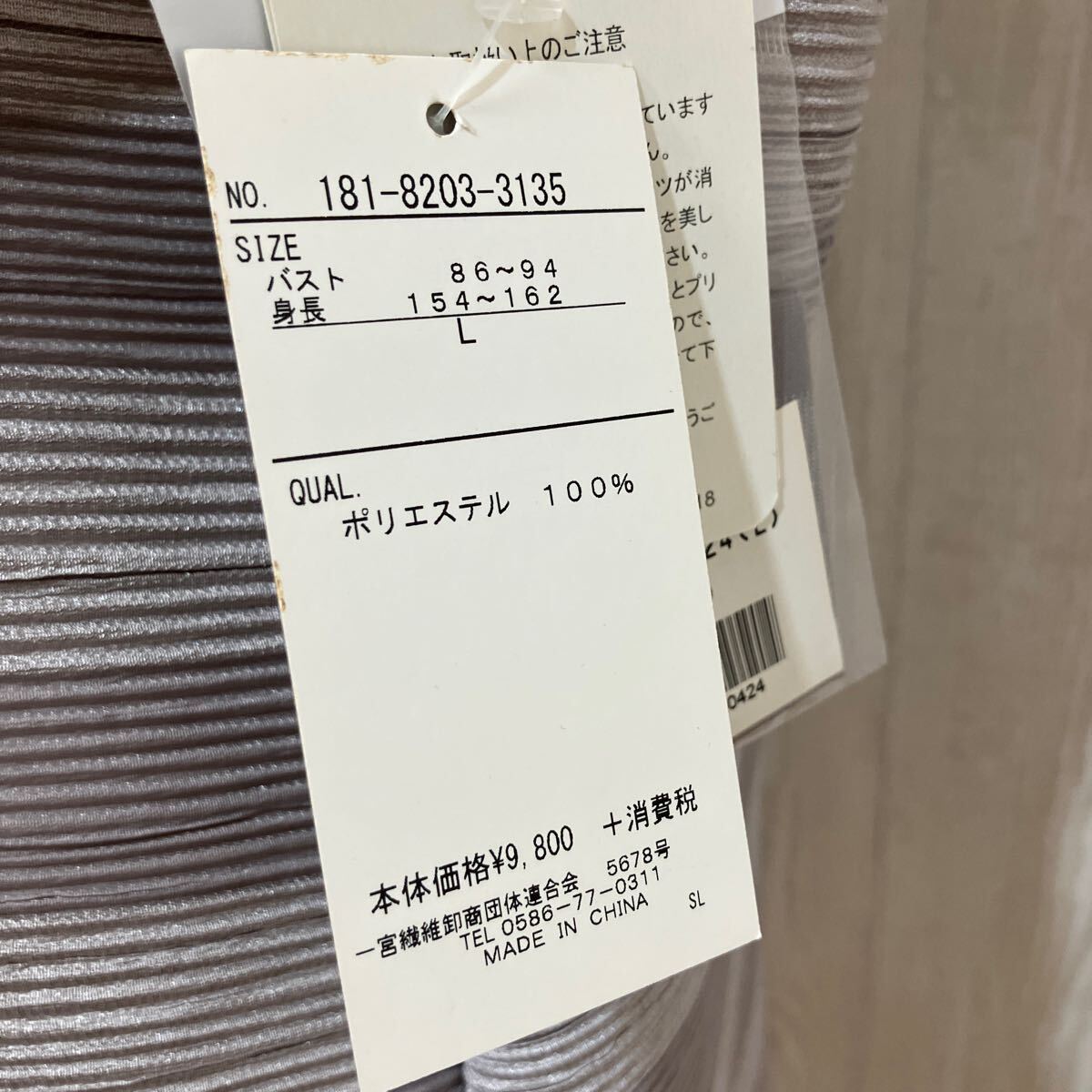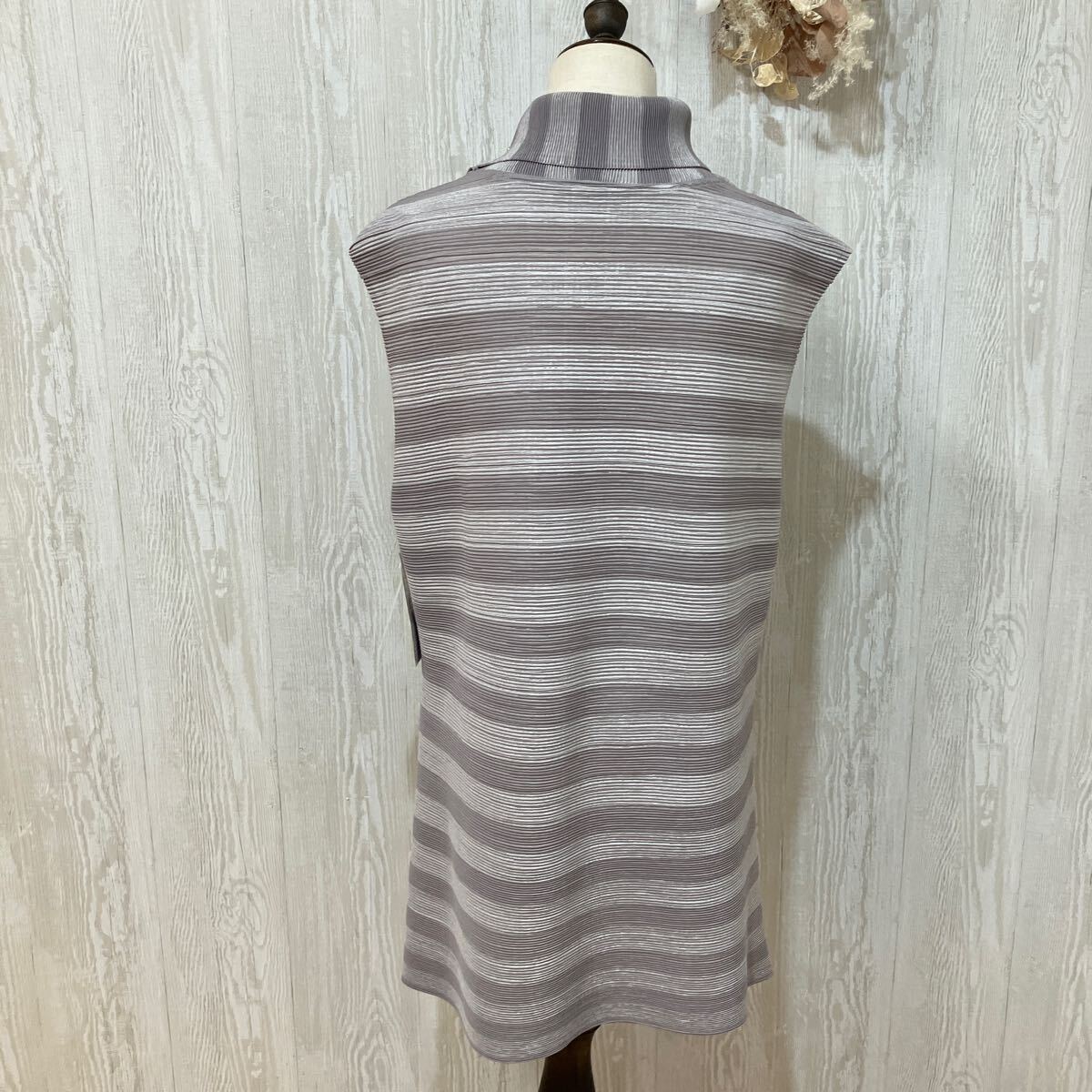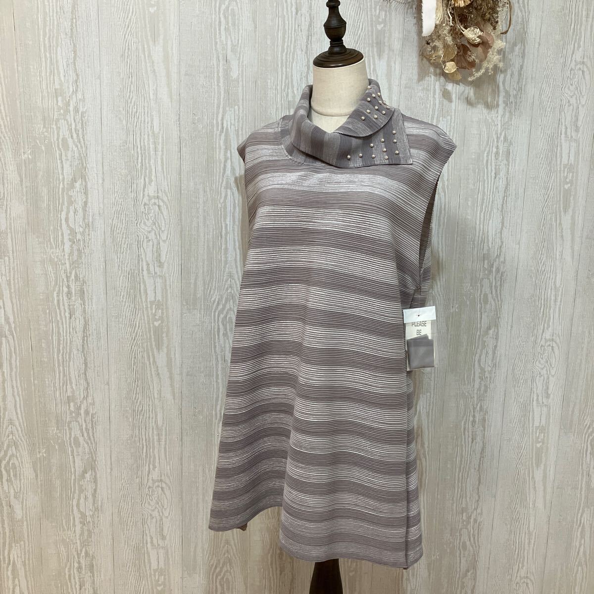 新品 タグ付 プリーツ ロング カットソー ノースリーブ collezione di moda Lサイズ ライトグレー パール ロールネック ミセス レディース