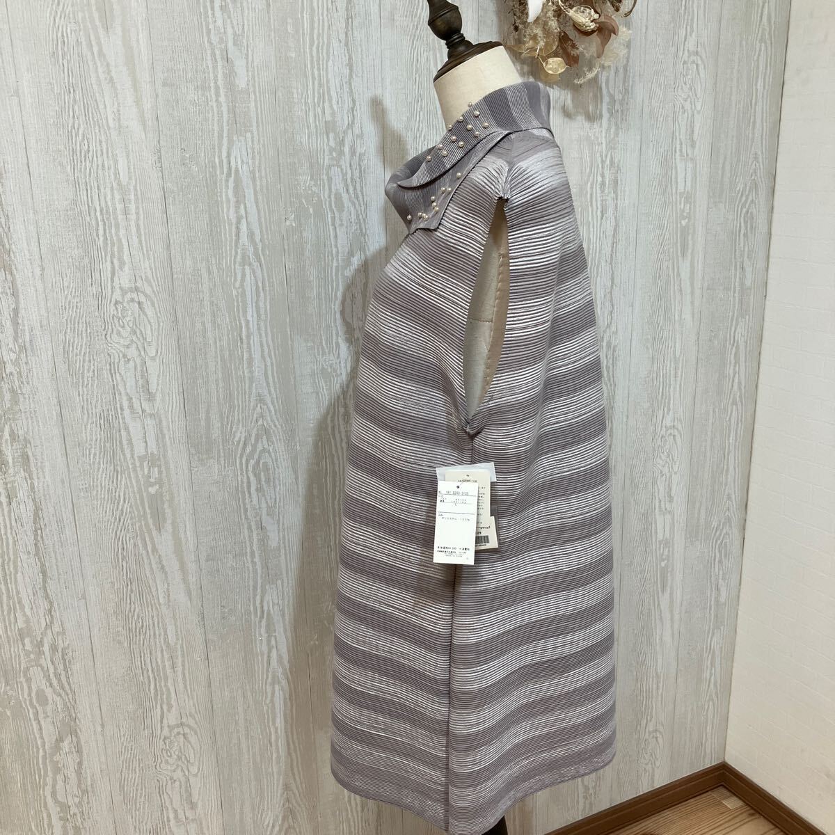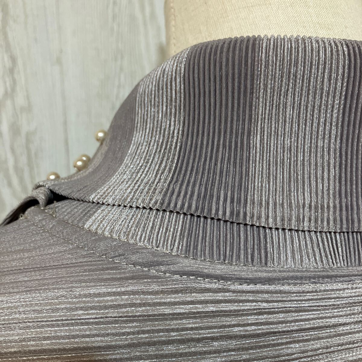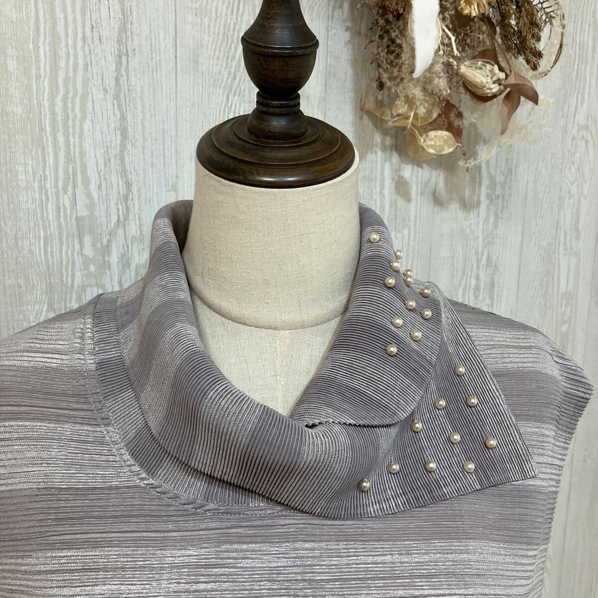 新品 タグ付 プリーツ ロング カットソー ノースリーブ collezione di moda Lサイズ ライトグレー パール ロールネック ミセス レディース