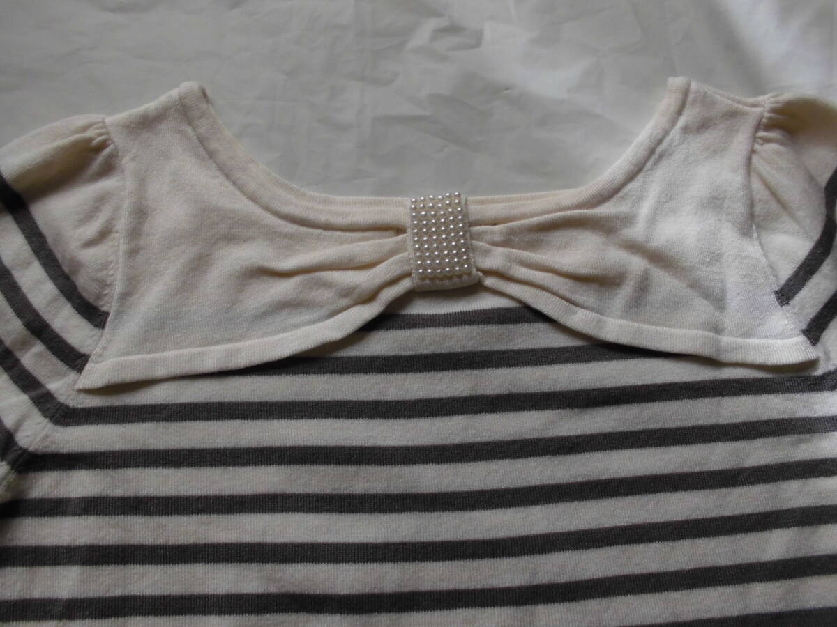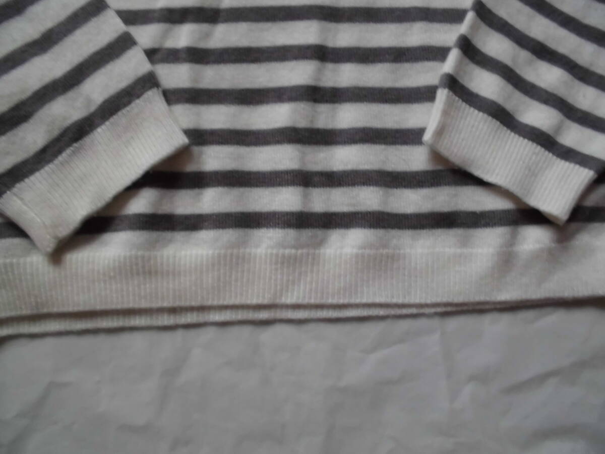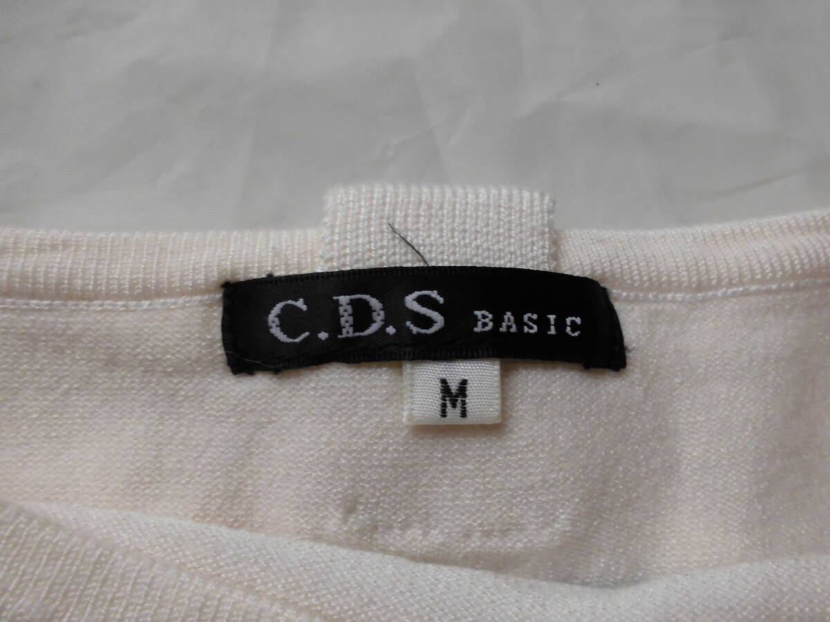 C.D.S BASIC、Mサイズ、実寸平置きで、着丈約49㎝(背中中心より)、身幅約41㎝、アクリル80%、ナイロン17%、ポリウレタン3%、オフホワイト(アイボリー?)×ブラウン系のボーダー柄です。 背中側は、リボンのようになっていて、パールの飾りもとても可愛いです(^_-)-☆ 前後どちらでも着用できそうな気がしますが・・・??(わかりませ(^_-)-☆) 少し毛羽立ちや小さな毛玉等よく見るとありますが、全体的に少ない方かと思います。 可愛い感じでもあり、ちょっと上品な感じでもあり、とても素敵なデザインです★ 衣類は、タタミジワがついている物もあります。リサイクルショップで販売されていた物も出品しておりますので、中には値札や値札を付けるプラスチックの輪がついたままになっている物もあります。取ってくださいね。 保管時の防虫剤のニオイ、洗剤や香水などのニオイが付いている場合もありますので、ご了承ください。 |