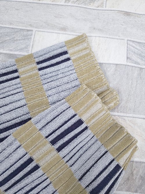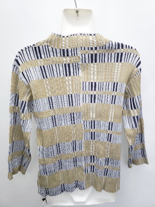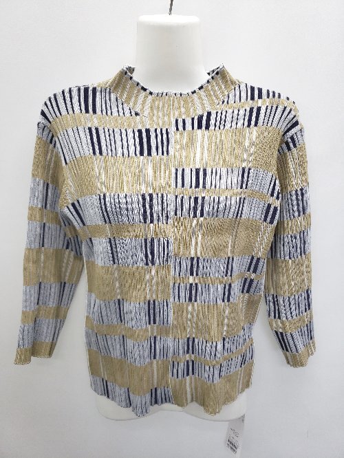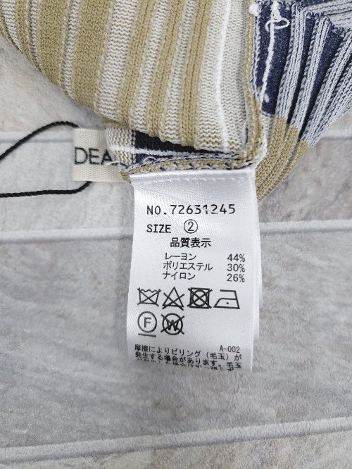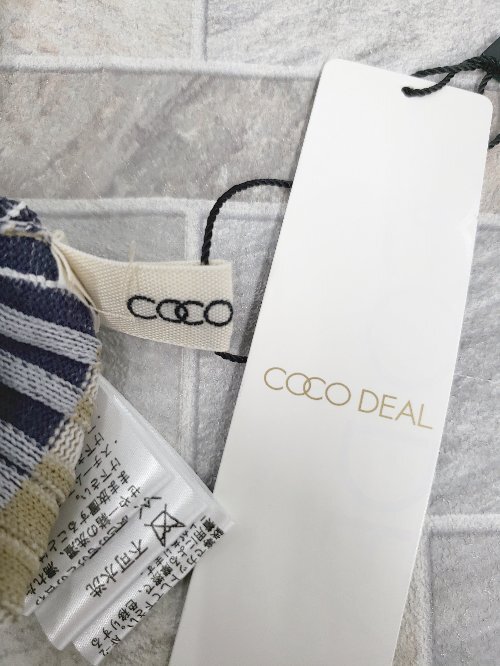 ◇ ◎ ●未使用● COCODEAL タグ付き リブ 七分袖 カットソー サイズ2 ベージュ ネイビー マルチ レディース P
